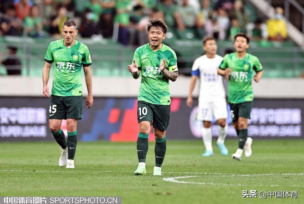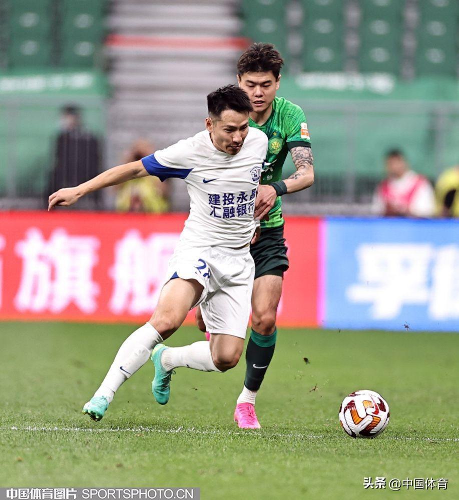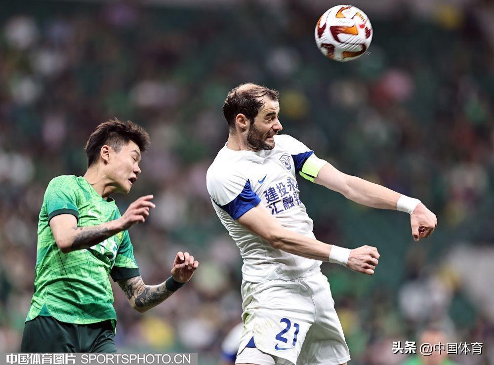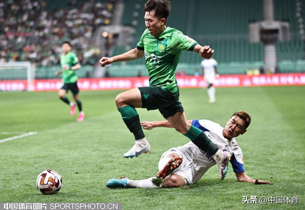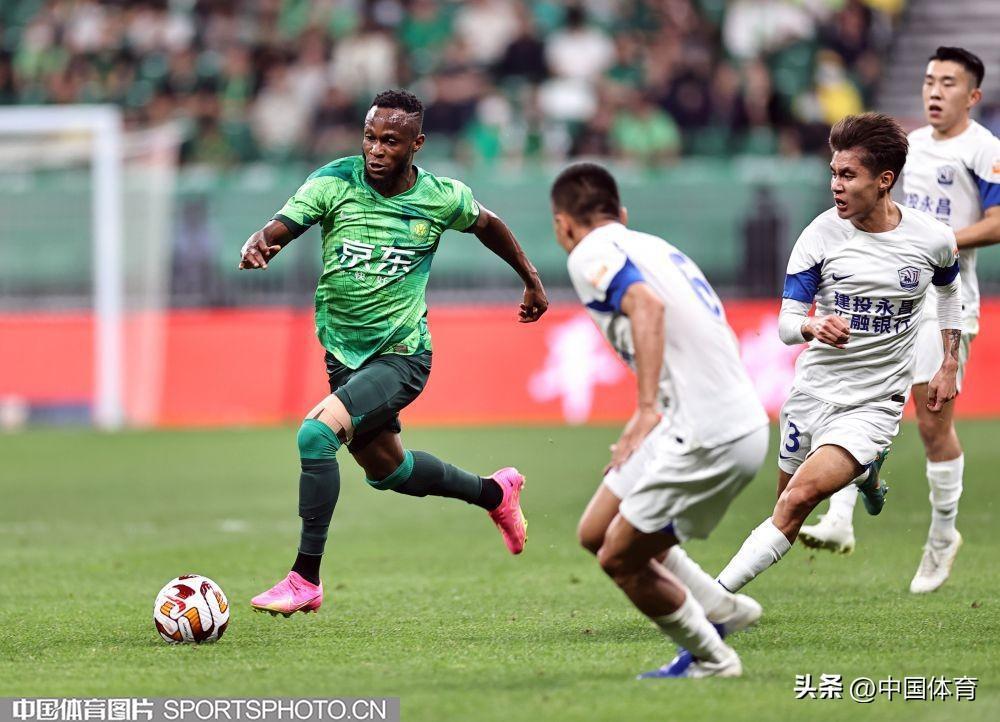中國體育訊 5月23日晚,2023賽季中超聯賽第9輪開戰,北京國安主場迎戰滄州雄獅隊。上半場奧斯卡門前推射破門,滄州雄獅取得領先,隨後張稀哲變線破門爲北京國安扳平比分,9分鐘後朱可夫助力滄州雄獅再度將比分超出,隨後北京國安王子銘、姜祥佑相繼破門,上半場結束北京國安以3比2領先。易邊再戰,王子銘頭球建功,高天意、楊立瑜錦上添花,最終北京國安以6比2大勝滄州雄獅隊。(中國體育圖片 王憲民 攝)