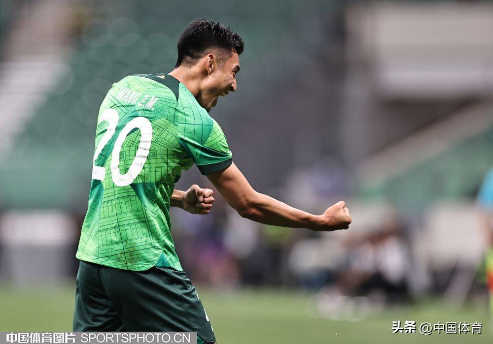高天意(左)進球后與隊友姜祥佑一起慶祝
