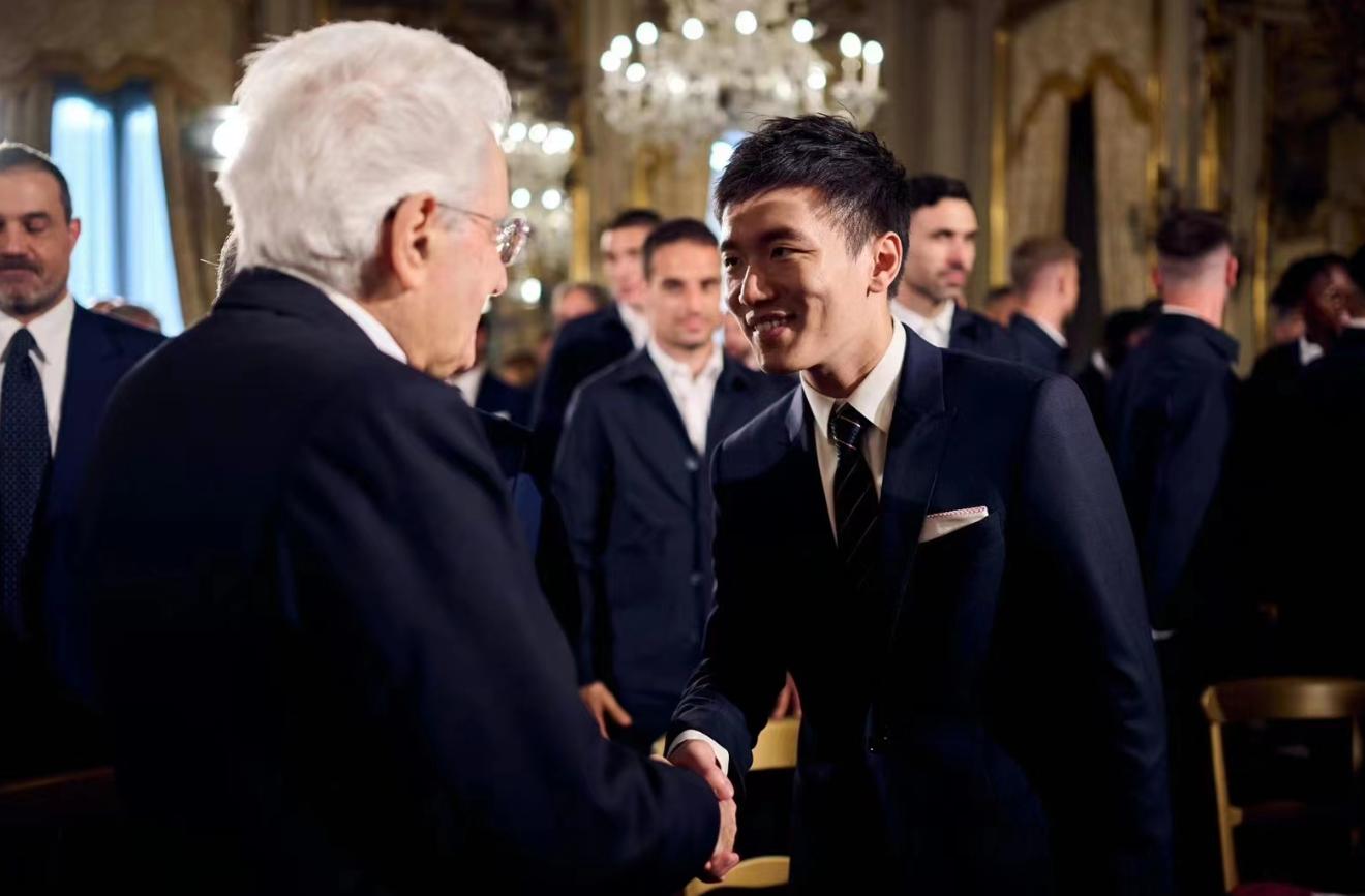 當地時間5月24日,同時也在意大利杯決賽前,張康陽帶領着“藍黑軍團”將士們,做客奎里納萊宮,受到了意大利總統馬塔雷拉的接見,這無疑是高規格的待遇,31歲的張康陽西裝革履,氣宇軒昂,國米的將帥和管理層領導也都整齊劃一,志得意滿。這次接見,無疑堅定了國米衝擊意大利杯冠軍,以及歐冠決戰曼城的鬥志!
