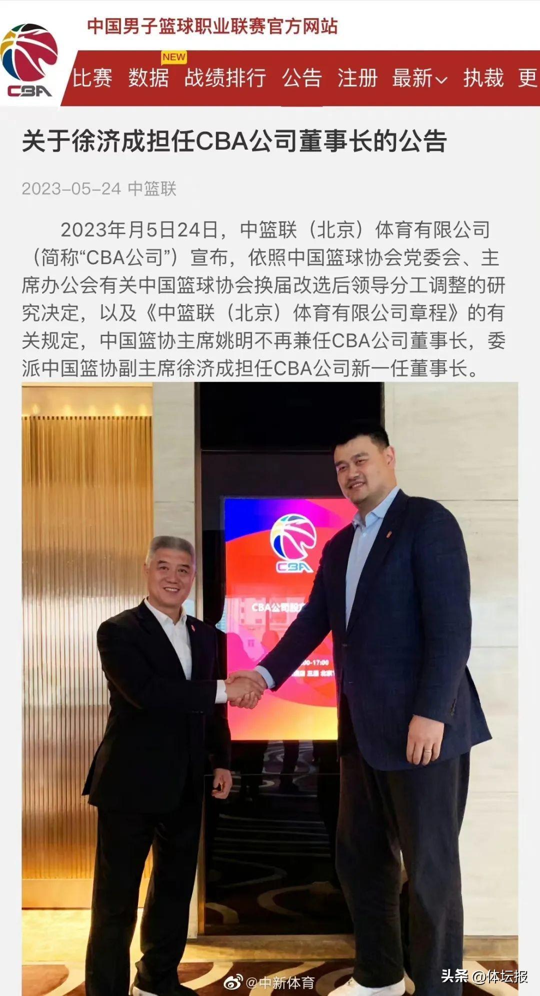 5月24日,中籃聯(北京)體育有限公司宣佈,依照中國籃球協會黨委會、主席辦公會有關中國籃球協會換屆改選後領導分工調整的研究決定,以及《中籃聯(北京)體育有限公司章程》的有關規定,中國籃協主席姚明不再兼任CBA公司董事長,委派中國籃協副主席徐濟成擔任CBA公司新一任董事長。