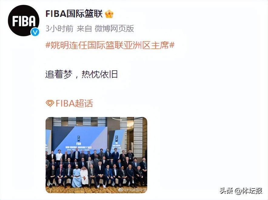 同一天,據國際籃聯消息,在馬來西亞吉隆坡舉行的國際籃聯亞洲區代表大會上,中國籃球協會主席姚明連任國際籃聯亞洲區主席(chairman)。