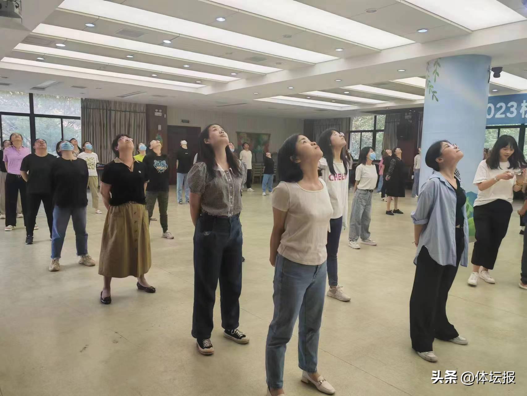 作爲本套護脊操的指導教師,章敏老師可謂是行業“頂流”。“這套操共八節,動作簡單易學,只要將每一個簡單的動作做到位,便能達到護脊正姿的作用。”章老師和在場的師生做了簡單介紹後,就開始示範與指導。在層層遞進、環環相扣、靈動高效的示範講課與操練指導的雙管齊下中,在場的師生很快就掌握了本套護脊操的精髓,一套操下來大家紛紛感嘆:“脊柱舒展了,整個人輕鬆了。”