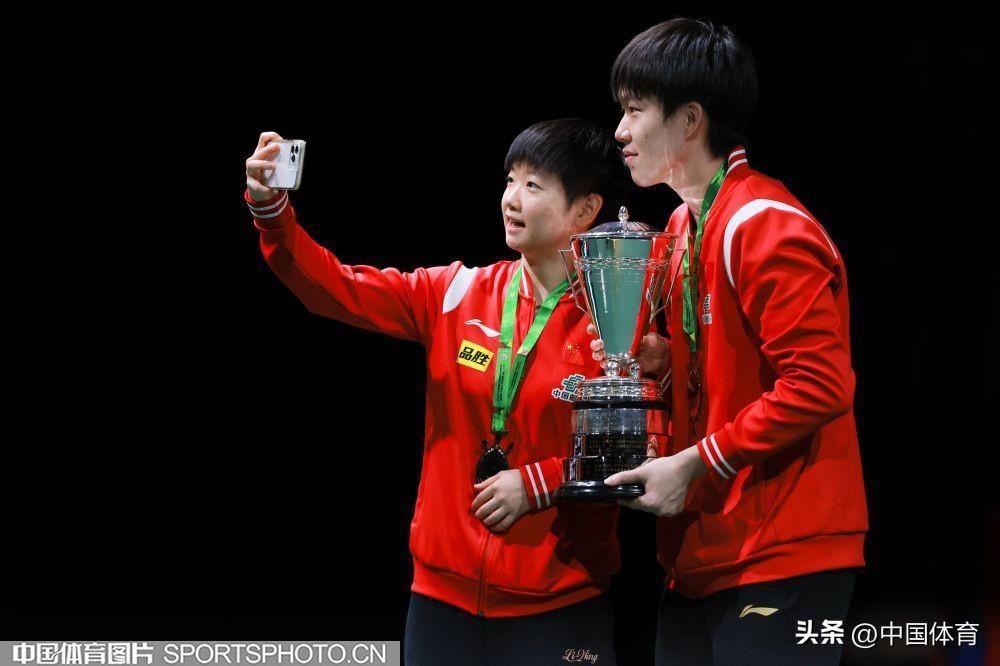 孫穎莎(左)、王楚欽在頒獎儀式上自拍