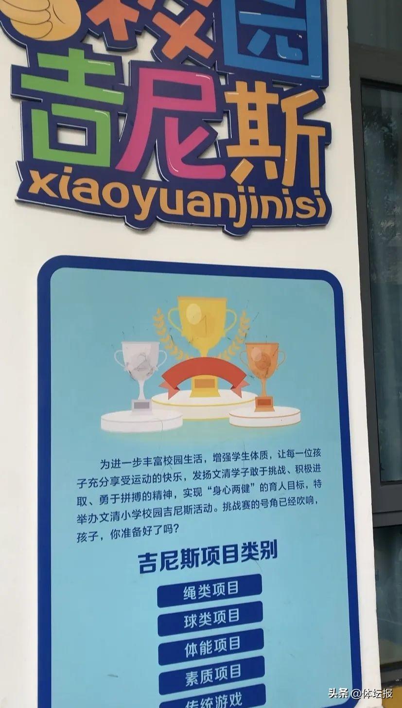 在文清小學,記者注意到校園裏隨處可見“校園吉尼斯”的牌子,上面有目前學校運動紀錄的保持者,包括繩類、球類、體能、素質、傳統遊戲等。其中1分鐘跳繩紀錄由201班的張未雨保持,成績是1分鐘245個。校長鄧華介紹,學校共有社團50多個,花樣跳繩社團是最受歡迎的社團之一。