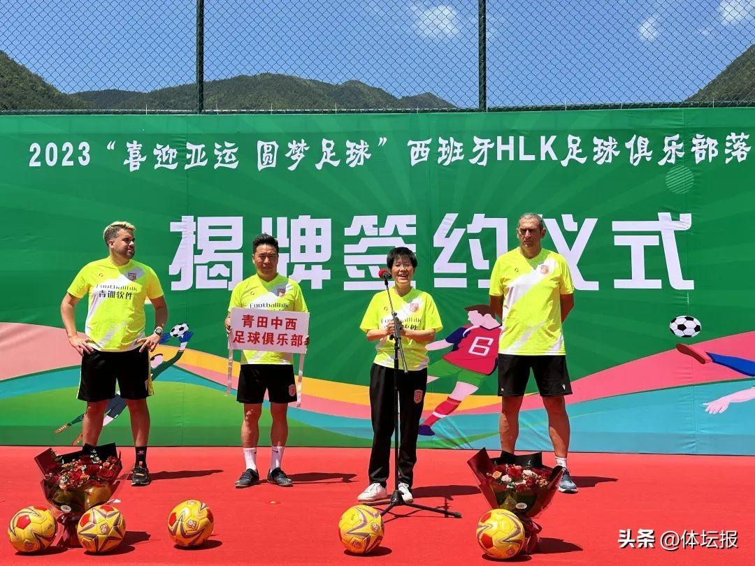 青田,是“僑鄉”,也是“橋鄉”,這裏以體育爲橋樑,搭建海內外體育平臺,推動華僑參與體育事業。5月28日,2023“喜迎亞運 圓夢足球”西班牙HLK足球俱樂部青訓基地落戶青田揭牌簽約儀式在在貴岙鄉足球小鎮舉行。