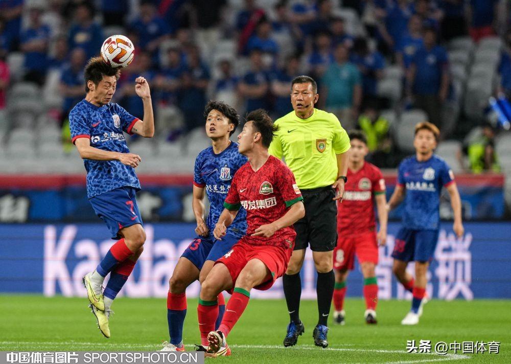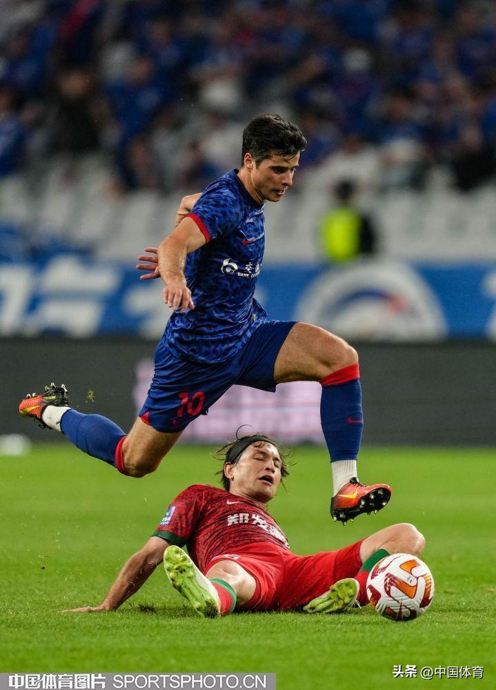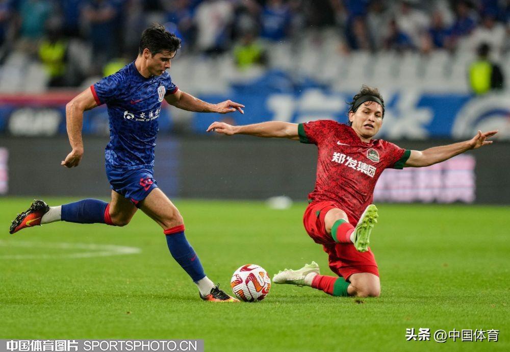 中國體育訊 5月28日晚,在中超第10輪的一場比賽中,上海申花隊主場迎戰河南隊,結果兩隊1比1戰平,申花隊遭遇4輪不勝。上半場第27分鐘,河南隊科維奇首開紀錄,幫助本隊客場取得領先;下半場蔣聖龍頭球破門,上海申花隊1比1將比分扳平。(中國體育圖片 倪敏哲 攝)