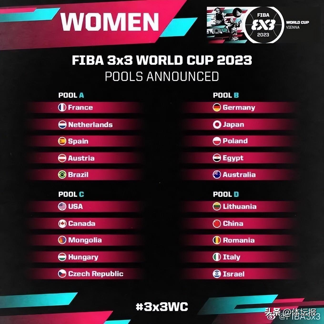 5月30日-6月4日,2023年三人籃球世界盃在奧地利維也納拉開戰幕。因在預選賽中無緣前三名,中國三人男籃遺憾無緣本屆世界盃。中國三人女籃則以種子球隊身份入圍,這也是中國籃壇“國字號”球隊今年面臨的首個重大國際賽事。