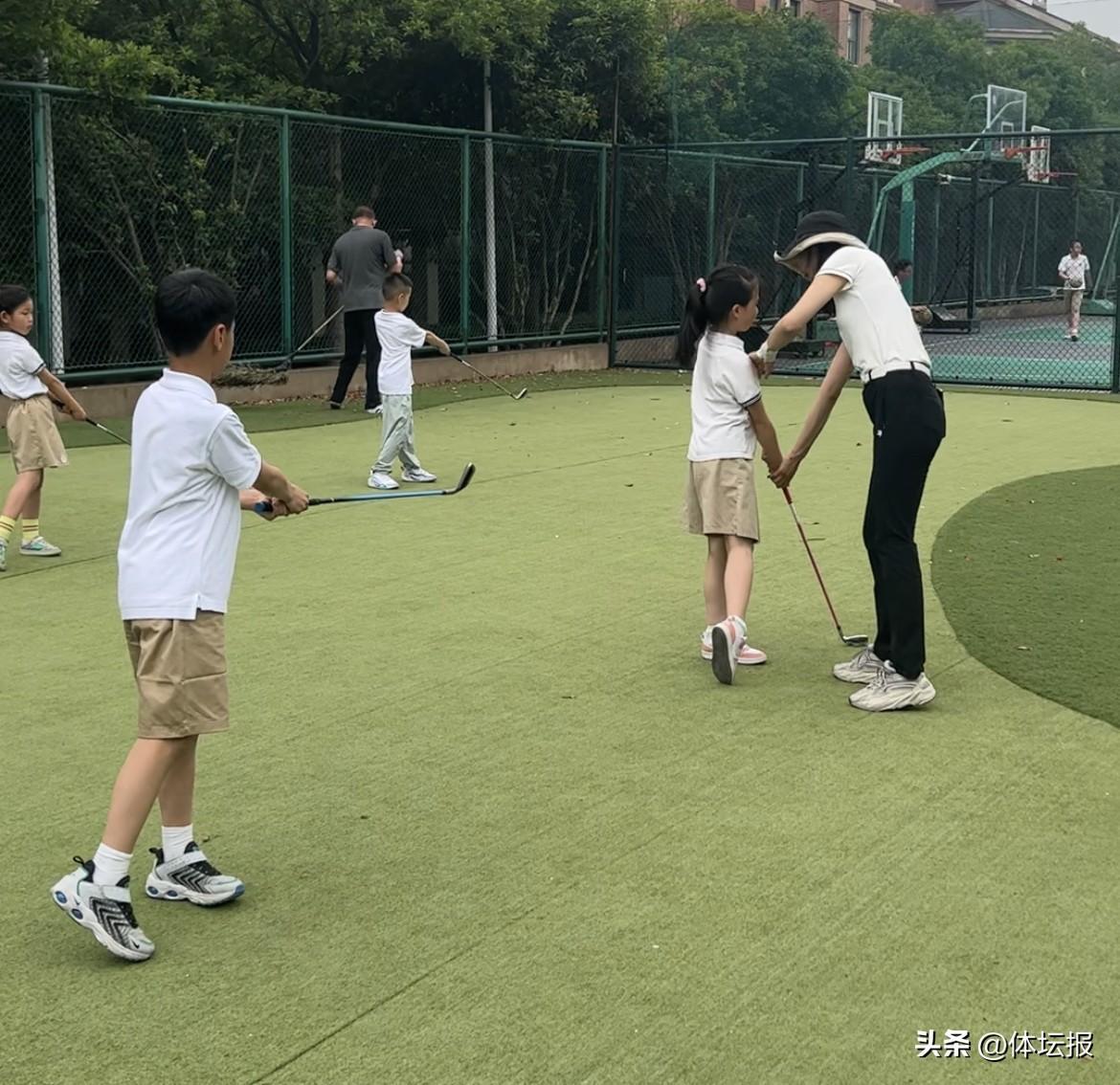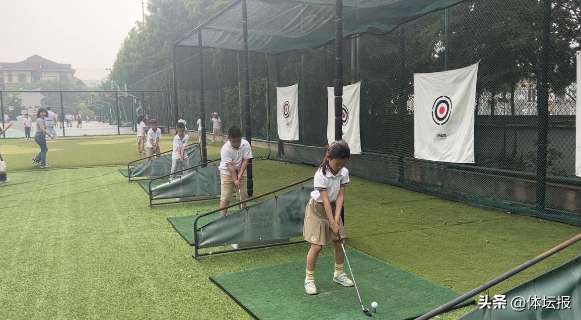 在杭州綠城育華小學,高爾夫是一年級學生的必修課,也是小年齡段學生的選修課,學校還有一支高爾夫球校隊。高爾夫選修課十分受歡迎,學生們常常需要看準時間“搶課”。學校配備了14個打擊籠、7個迷你果嶺,能夠讓一個班20名左右的學生共同參與其中。
