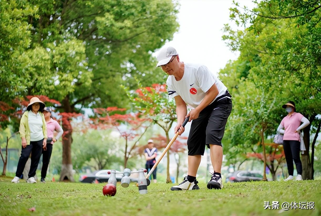 來自浙江工業大學、浙江科技學院、寧波諾丁漢大學等14所省內高校,共25支男女隊伍參賽,100多位教職工化身運動員,在場上擊打着紅色的木球,享受着這項綠色運動帶來的愜意。