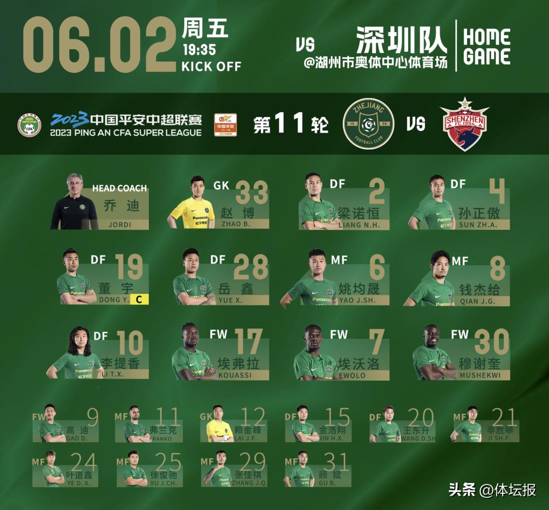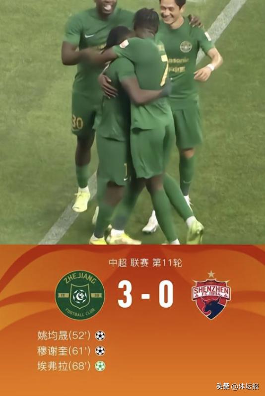 6月2日,中超新一輪比賽如期開戰,本輪比賽,浙江隊繼續坐鎮主場,迎戰深圳隊,並最終以3:0大勝深圳。