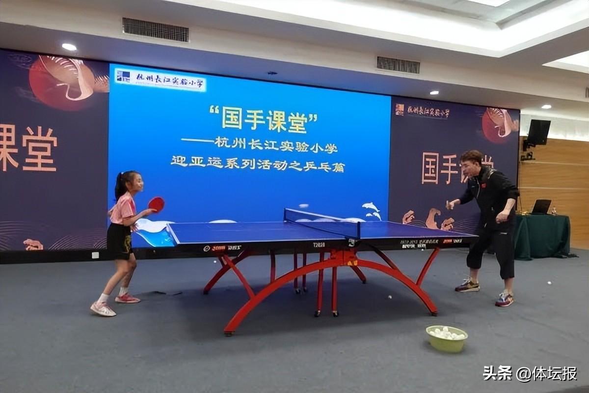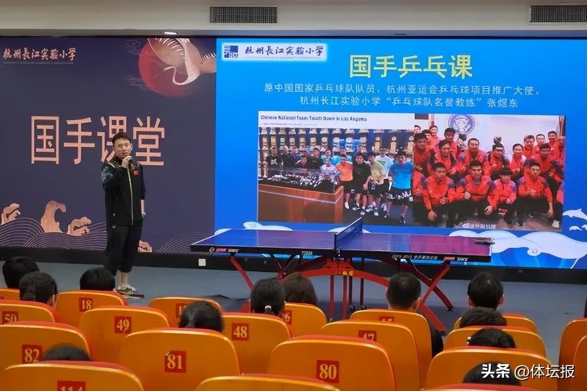 6月2日下午,杭州長江實驗學校增設了一堂別開生面的“國手乒乓課”。課上,中國國家乒乓球隊原隊員、杭州亞運會乒乓球項目拱墅區乒乓推廣大使張煜東以該校“乒乓球隊名譽教練”的身份給學生們上了一堂乒乓球課。