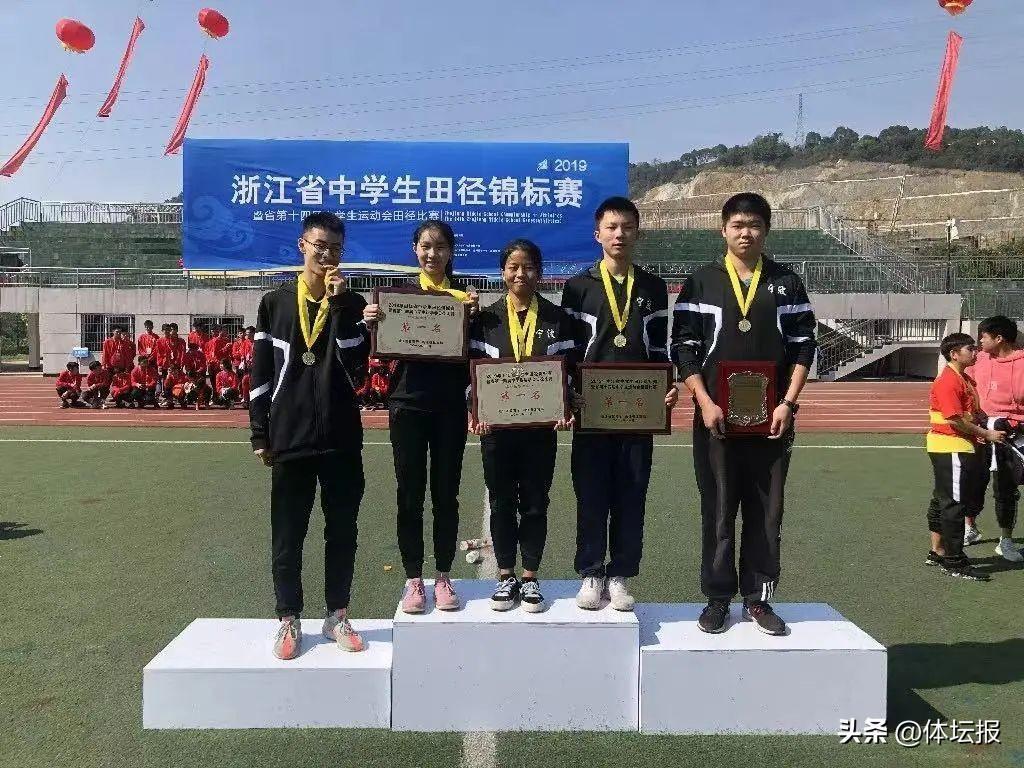 2019年浙江省中學生田徑錦標賽,舒衡(右二)與隊友合影