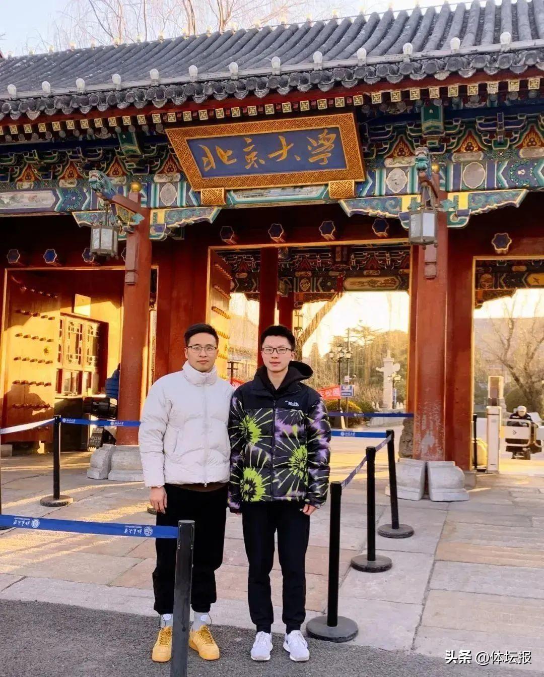 舒衡(右)和教練裘志鵬在北京大學校門前合影