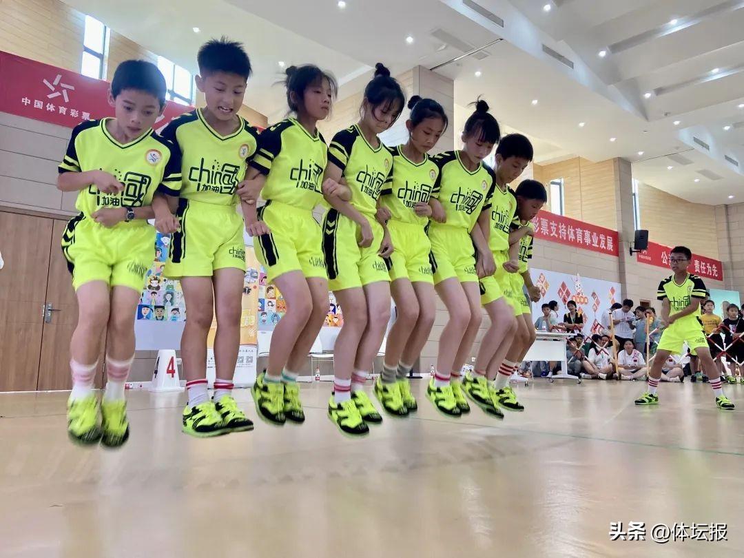 6月9日下午,由浙江省青少年體育運動聯合會主辦的2023中國體育彩票浙江省首屆青少年體育俱樂部跳繩爭霸賽在杭州採荷第一小學教育集團錢江新城實驗小學迎來收官。來自全省的11個學校俱樂部在爲期兩個月的選拔賽中脫穎而出,255名選手來到總決賽的舞臺。比賽爲團體積分制,共設30秒單搖跳(男、女子組)、1分鐘1帶1跳(男、女子組)、3分鐘10人長繩“8”字跳、1分鐘10人同步跳和花樣繩操項目。