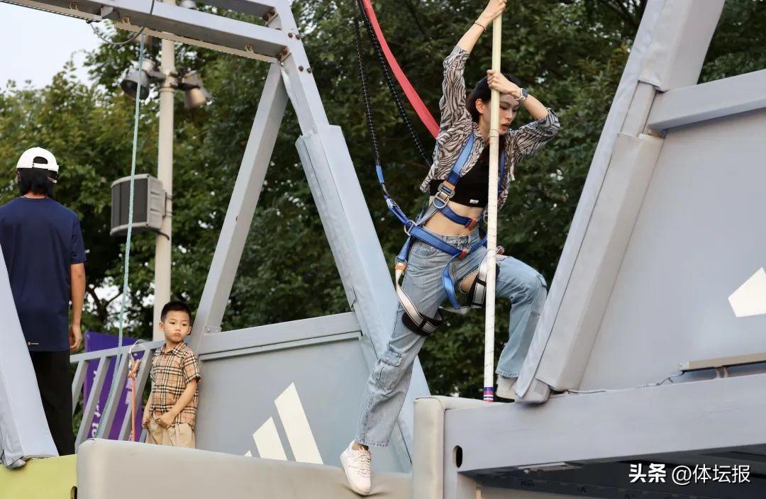 下午4點半,與杭城室外35度溫度一樣,隨着比賽的開啓,街頭運動颳起的暖風伴隨着動感的音樂開始點燃了城市陽臺的熱情。首先進行的是女子撐杆跳比賽,比賽隨着高度的提升,難度也在逐步加高。