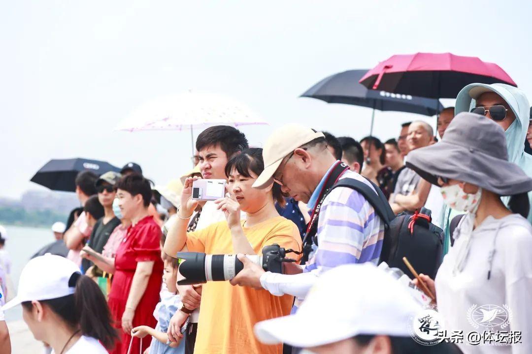 湖畔邊,觀衆們看得可起勁,有的甚至跟着龍舟前進方向一邊奔跑一邊助威。“快!快!快!”他們和着急促鼓點發出陣陣吶喊,聲音一陣高過一陣。