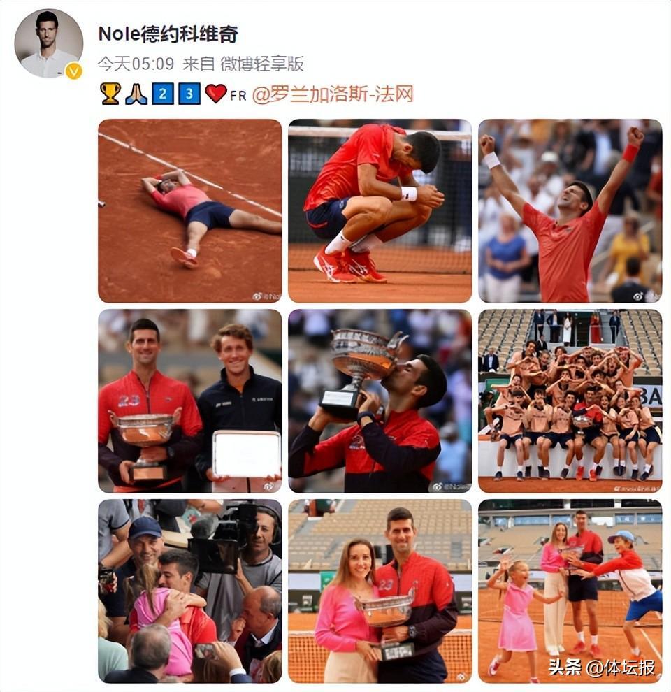6月12日晨結束的法國網球公開賽男單決賽中,德約科維奇3比0戰勝魯德,拿下生涯第23個大滿貫冠軍,也成爲第一位三次贏得“全滿貫(一名球員贏得澳網、法網、溫網、美網四大滿貫賽)”的球員。隨着此次法網男單奪冠,36歲的德約科維奇取得了兩大歷史性突破:一是成爲前所未有的男子網球“三圈全滿貫”得主,即在四大滿貫賽事的奪冠次數均達到至少3次;二是在大滿貫賽事奪得23冠,成功超越納達爾,成爲男子網壇大滿貫奪冠次數最多的選手。另外,他在即時排名中重新奪回世界第一的位置。(來源:中國新聞網、新京報等)