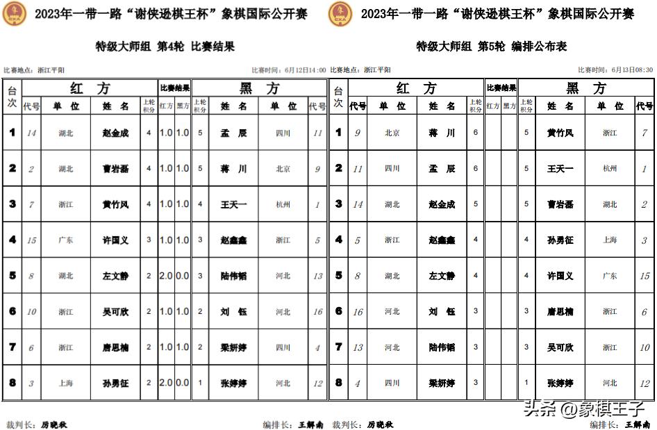 六將很可能衝霸前二爭冠軍決賽權,五輪王天一後手對孟辰,蔣川先手對黃竹風,趙金成執紅對曹巖磊,後續決勝兩輪,他們的內部互殺,幾乎決定出線。
