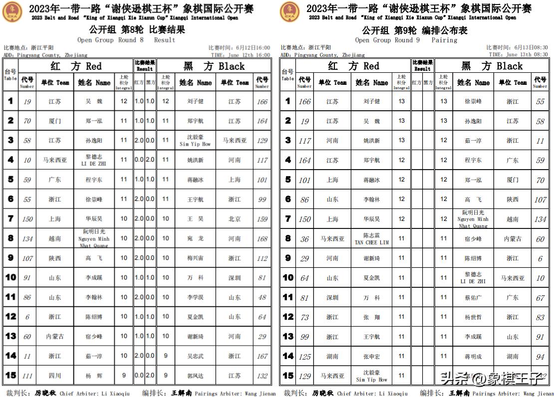 鄭一泓、李翰林、程宇東、茹一淳、鄭宇航、蔣融冰、華辰昊、高飛、越南阮明日光,九人12分,多人11分,公開組十二輪後,前二決戰,還有四輪,局勢撲朔迷離。