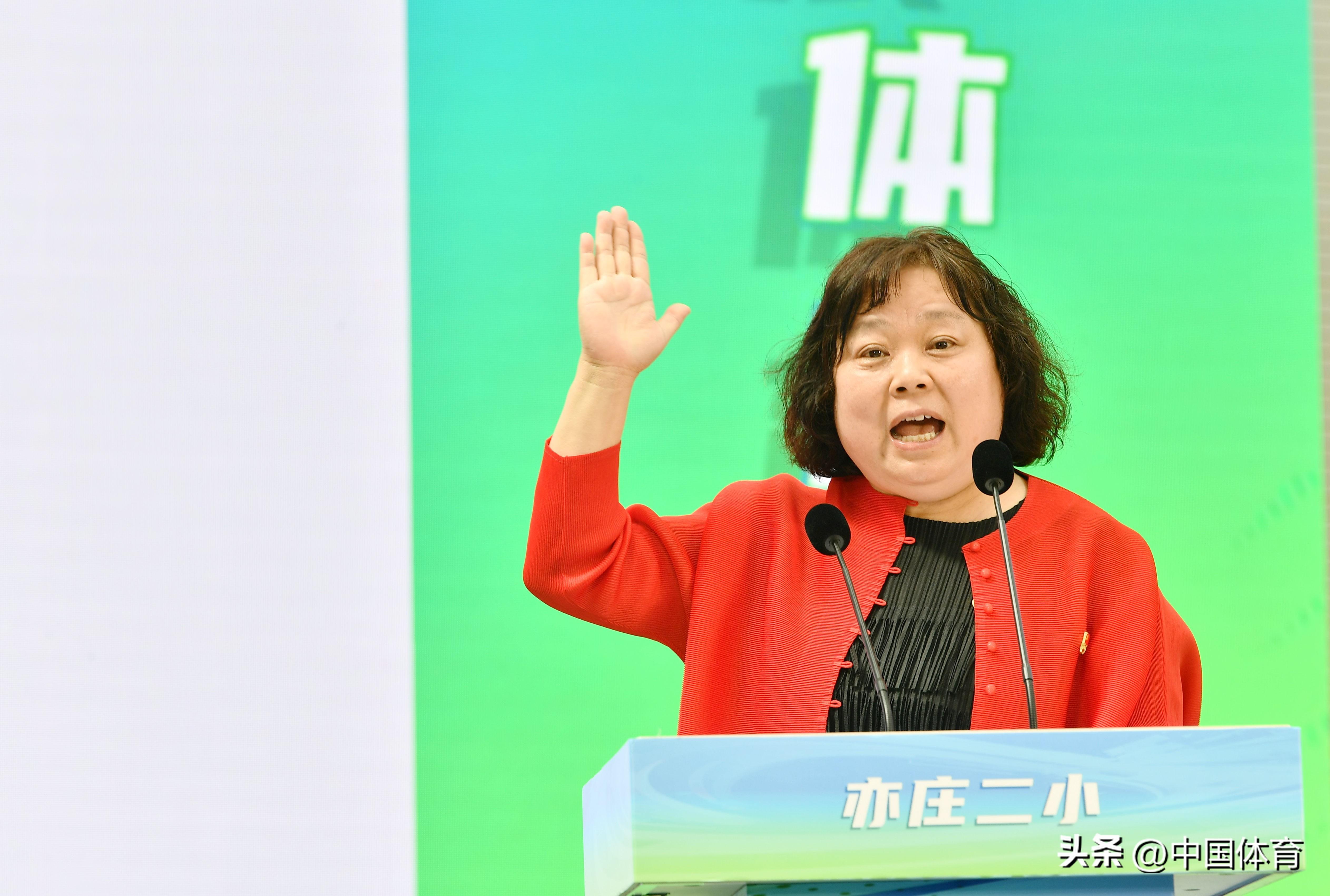 【組圖-4】6月13日,爲紀念毛澤東主席“發展體育運動,增強人民體質” 題詞71週年,北京經濟技術開發區社會事業局在亦莊二小舉辦“以體育人”學校體育工作展示交流活動。“課間操”、“傘操”、“體育月賽”、“技能活動”等活動展示了學校“以體育人”工作,充分體現了亦莊二小落實“無體育不教育”的發展理念,發揮體育在五育並舉中的基礎性功能。亦莊二小白淑蘭校長以《以“奔”文化爲依託 體教融合的大思政課的研究實踐》爲題進行了交流分享。值得一提的是,作爲中國田徑先驅者,體育事業發展的見證者鄭鳳榮老師她講述了自己打破世界紀錄的歷程和故事,介紹了毛主席題詞後體育事業翻天覆地的變化,分享了黨和國家領導人接見她時的激動時刻,同時寄予亦城少年傳承體育精神、健康快樂成長。(記者白宇 攝影報道)