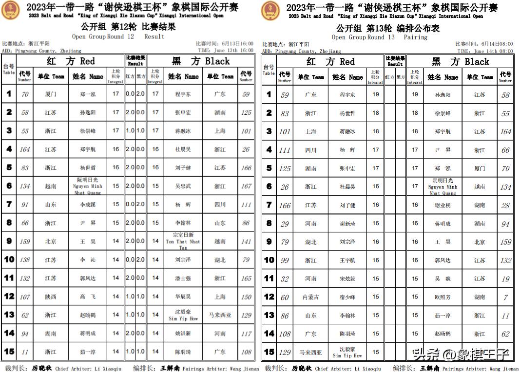 大賽特大組六輪後,公開組十二輪後,前二冠軍決賽,決戰14日上午8時終極演繹,象棋王子持續全程直播。