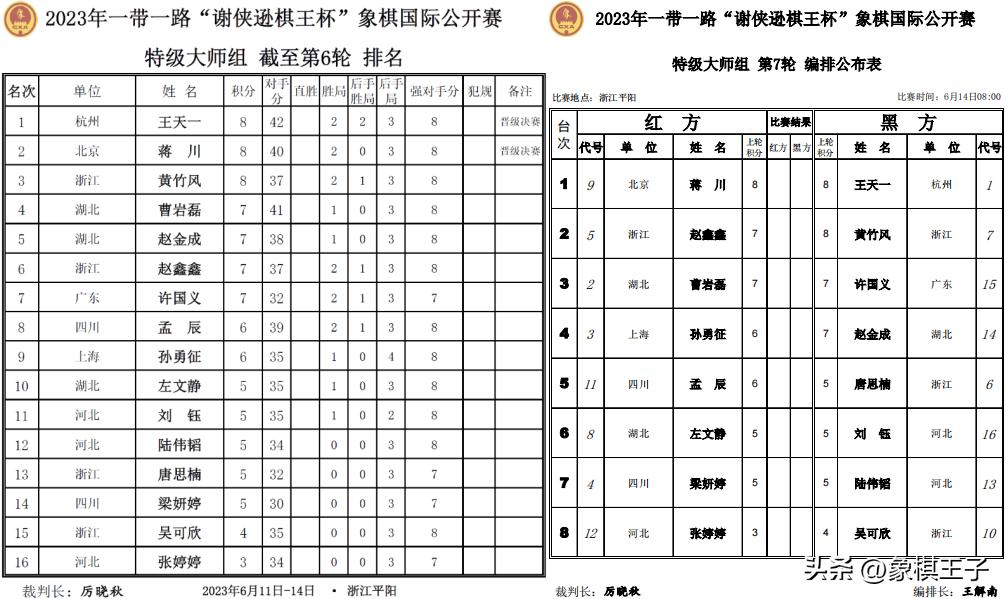 賽會特大組六輪下來,王天一第一、蔣川第二,王蔣火星撞地球,超級決戰,黃竹風、曹巖磊、趙金成、趙鑫鑫、許國義、孟辰、孫勇徵等衆人,依然可以爭取好名次。