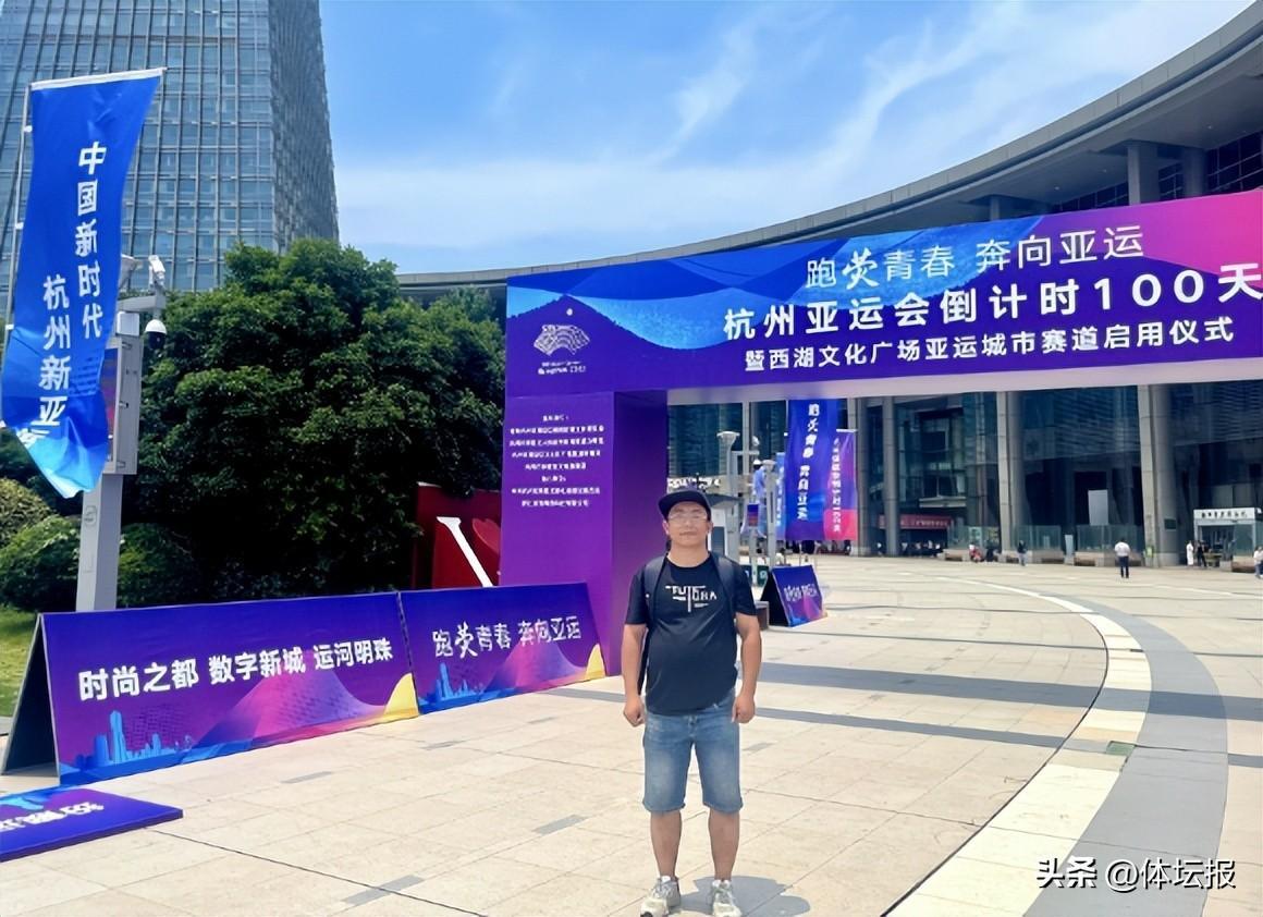 西湖文化廣場上,一片藍色的佈景臺在炎熱的天氣中顯得格外清涼,吸引着行人的目光,那是“跑熒青春,奔向亞運”亞運城市賽道啓用儀式的現場。36歲的燈光音響師周宇正在一旁的大棚中做場地佈置工作。周宇表示,杭州最近亞運改建後變化挺大,很多地方煥然一新,最近有很多亞運的活動正在緊鑼密鼓地佈置中,城市越來越熱鬧。
