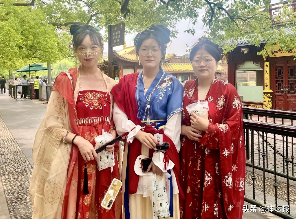 宋韻文化一直是杭州城市文化的主旋律。西湖邊的綠蔭道上可以見到不少身着漢服的年輕女孩,跟西子湖畔的美景相映成趣。來杭開啓一場大學畢業旅行的王木木跟她的朋友們便是其中之一。王木木表示,杭州有很多歷史古蹟,跟漢服很搭,她們就穿着漢服來玩了,現在杭州街頭有很多亞運元素的場景設計,她們也感受到了亞運會即將來臨的氛圍。