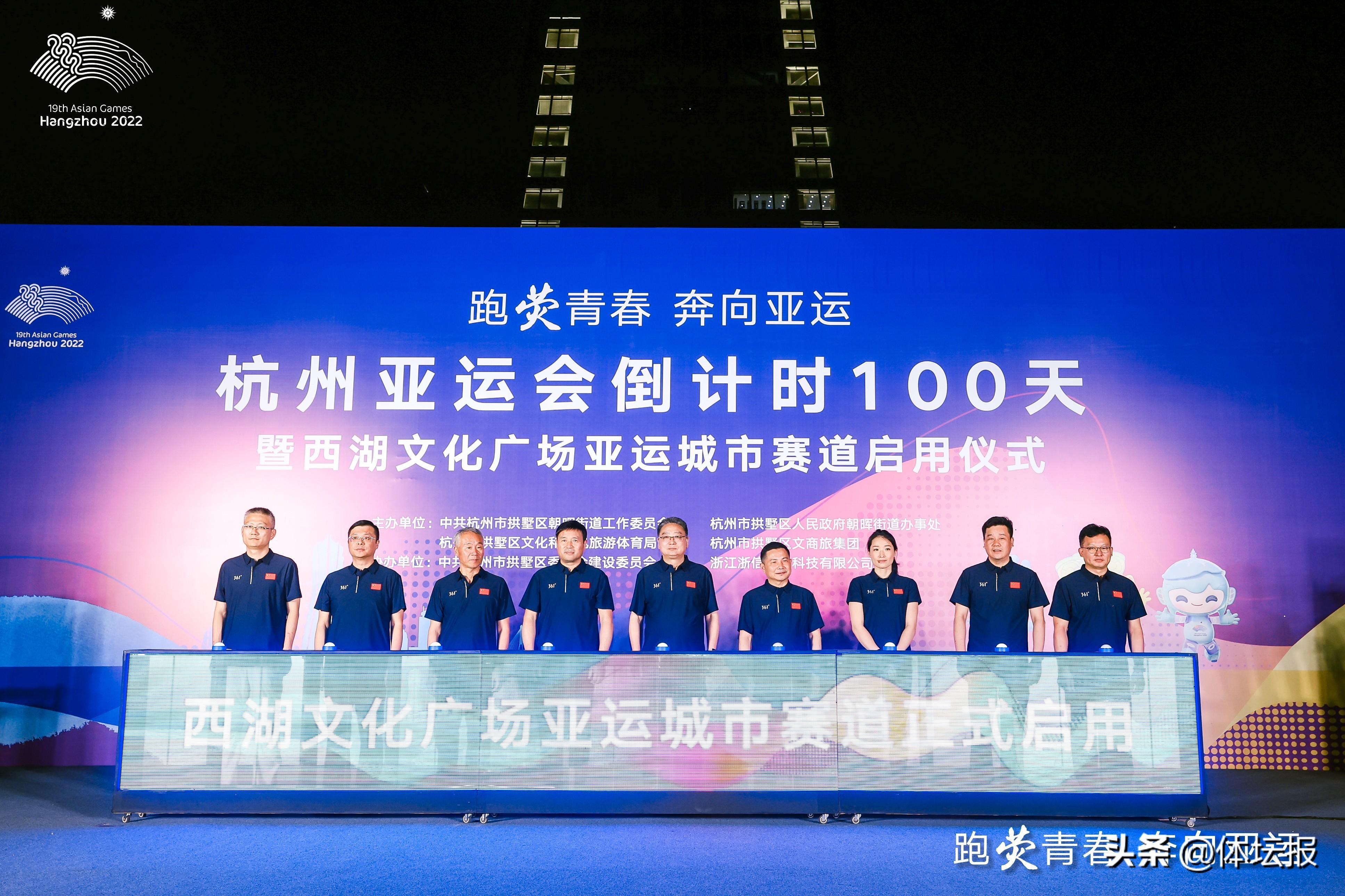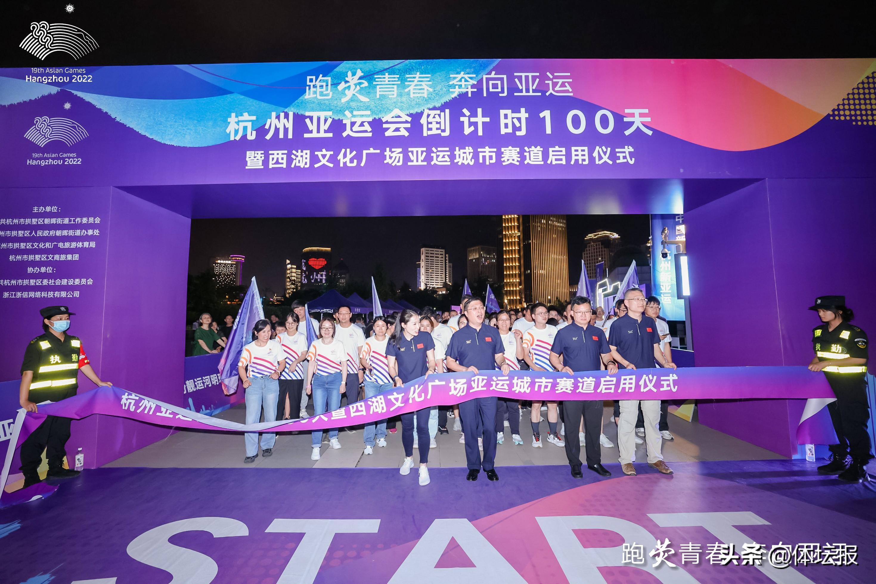 隨着杭州亞運會倒計時100天的到來,全城迎亞運氛圍又迎來一個新的高潮。6月14日晚,“跑熒青春 奔向亞運”杭州亞運會倒計時100天暨西湖文化廣場亞運城市賽道啓用儀式在杭州拱墅區西湖文化廣場舉行。本次活動由中共杭州市拱墅區朝暉街道工作委員會、杭州市拱墅區人民政府朝暉街道辦事處、杭州市拱墅區文化和廣電旅遊體育局、杭州市拱墅區文商旅集團主辦。