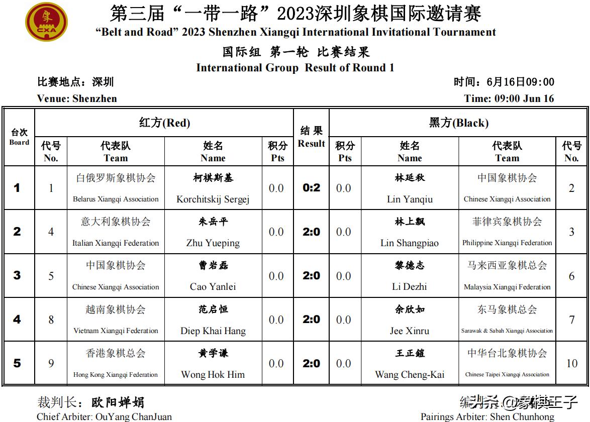 6月16日,2023年深圳象棋國際賽在廣東深圳開打,首輪中,許國義擊敗孟辰,黃竹風取勝孫勇徵,洪智戰平陸偉韜。女子組陳幸琳勝,國際組中國隊曹巖磊、林延秋勝出。象棋王子全程直播。