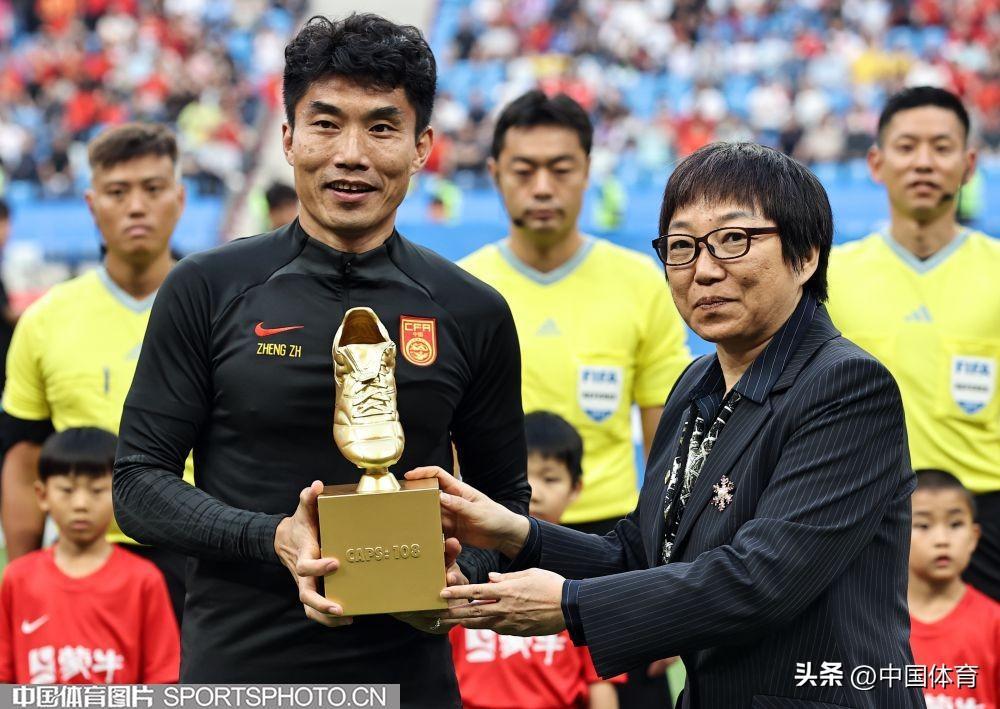 足協副主席孫雯爲鄭智頒發特製獎盃