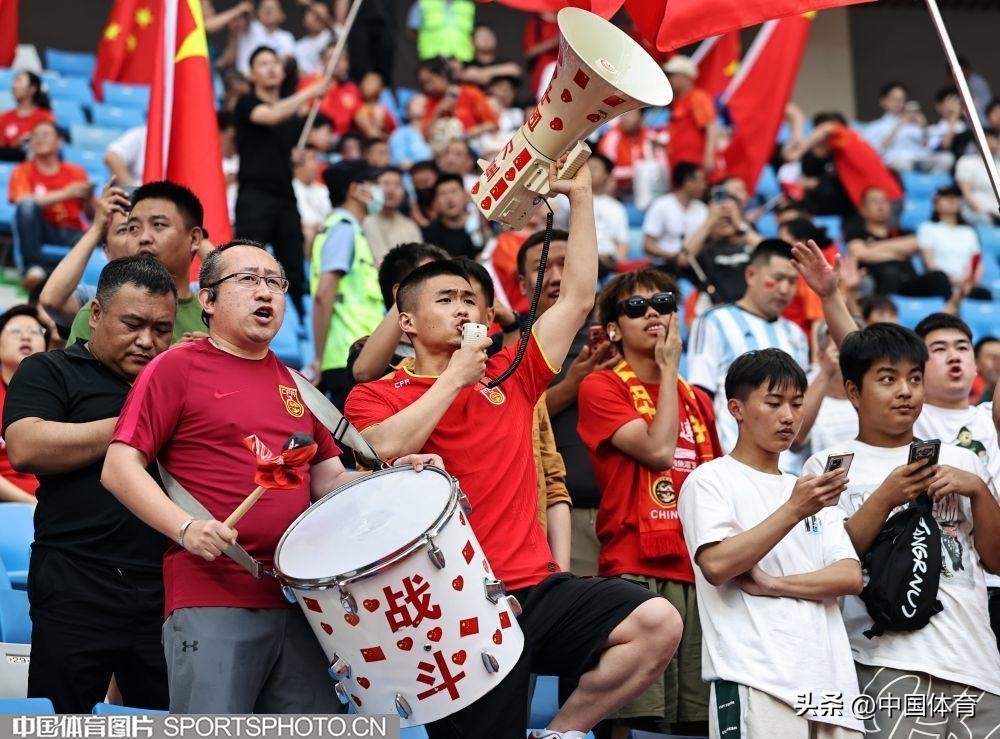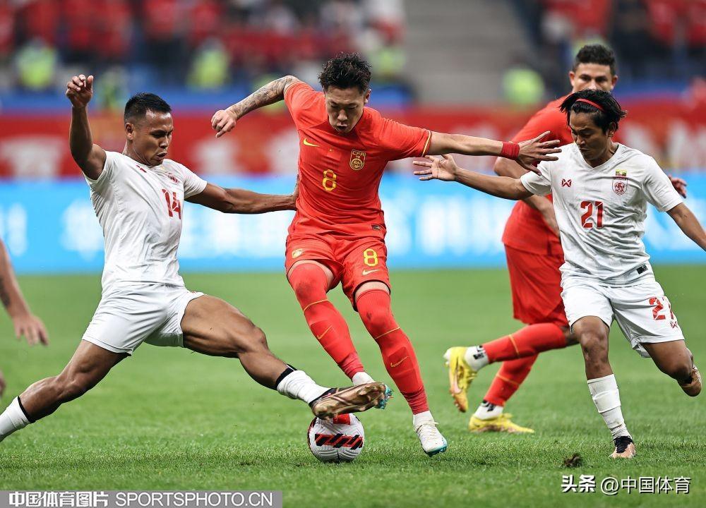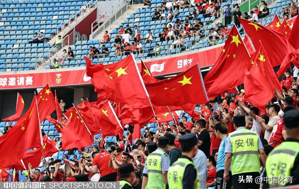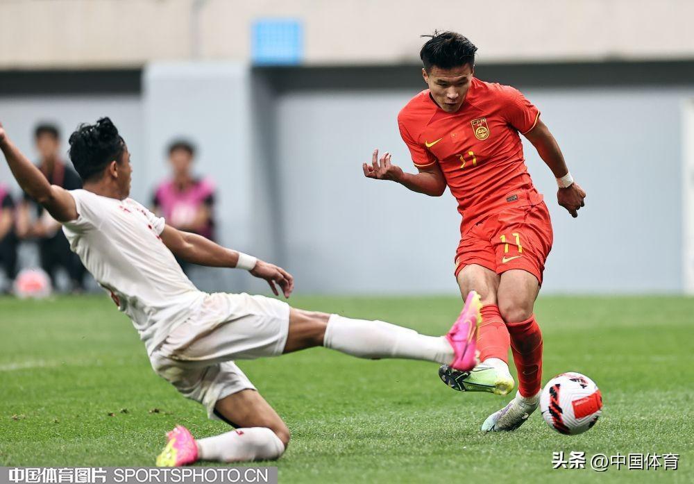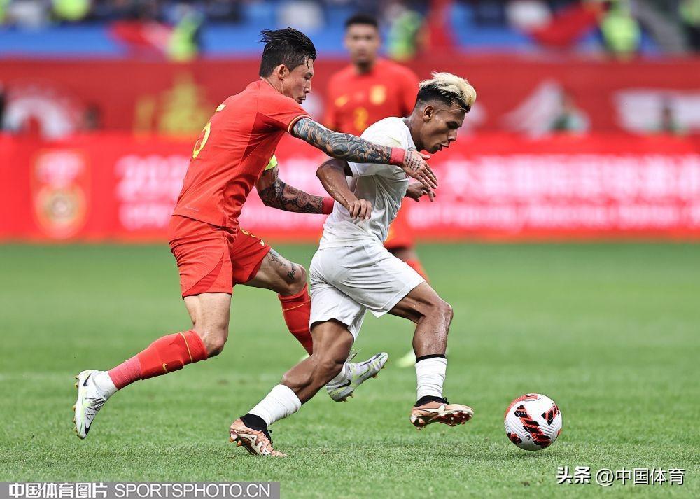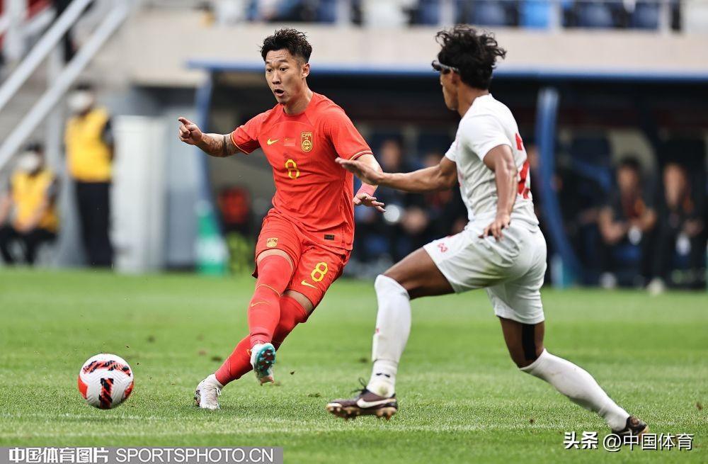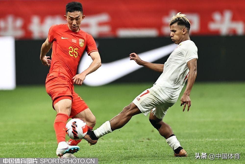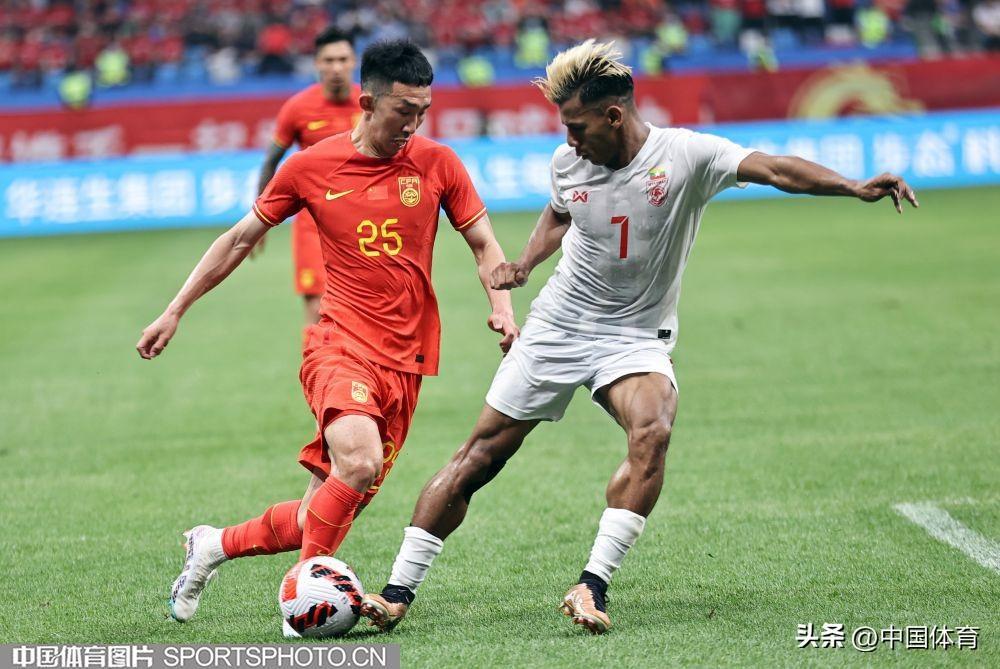 中國體育訊 6月16日晚,中國之隊國際足球邀請賽中國男足在大連梭魚灣足球場上演。坐鎮主場的中國男子足球隊(紅衣)以4比0完勝緬甸男子足球隊(白衣)。上半場,張琳芃、林良銘各進一球;下半場,武磊梅開二度。(中國體育圖片 王憲民 攝)