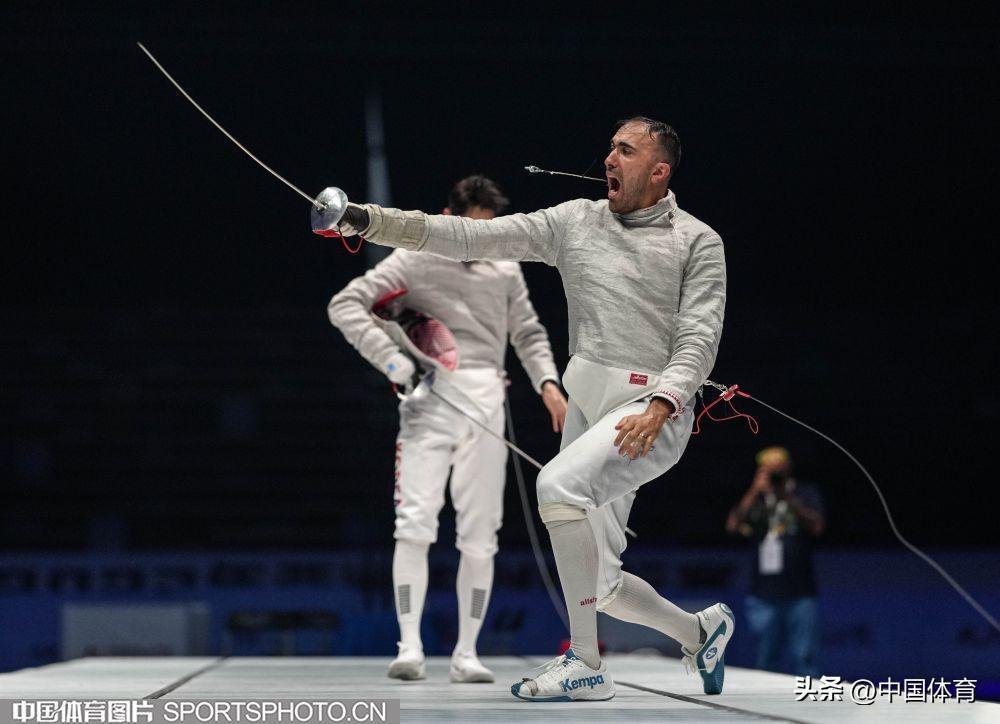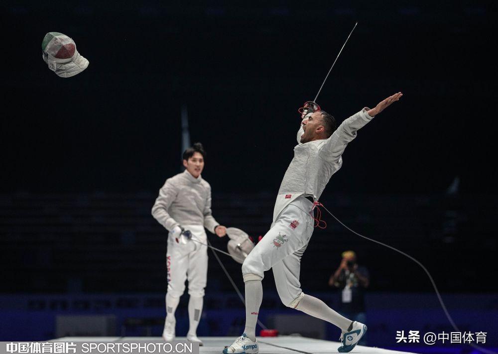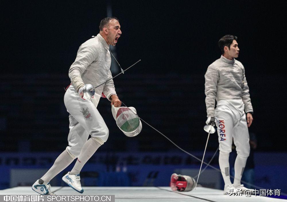 中國體育訊 6月17日,2023年亞洲擊劍錦標賽在江蘇省無錫市太湖國際博覽中心開賽。在男佩個人決賽中,伊朗名將帕克達曼擊敗韓國金準鎬,奪得金牌。另一位伊朗選手拉赫巴里和中國香港選手羅浩天並列獲得銅牌。中國隊最好成績是顏穎慧獲得的並列第10。(中國體育圖片 倪敏哲 攝)帕克達曼(右)在決賽中帕克達曼(右)在決賽中帕克達曼(右)在決賽中帕克達曼(左)慶祝奪金帕克達曼(左)慶祝奪金帕克達曼(右)慶祝奪金