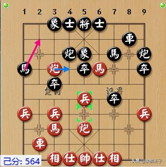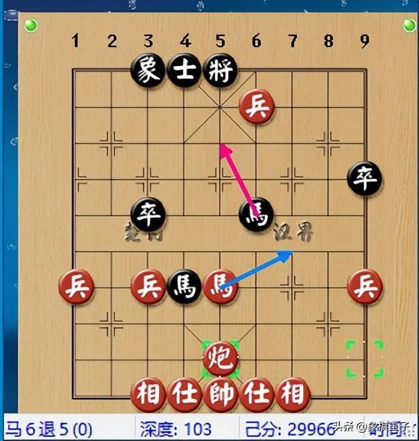 紅棋中兵直線撞下去,幾個來回,破掉黑士,卡入黑棋下二線,鎖住黑方宮門,勢大力沉。