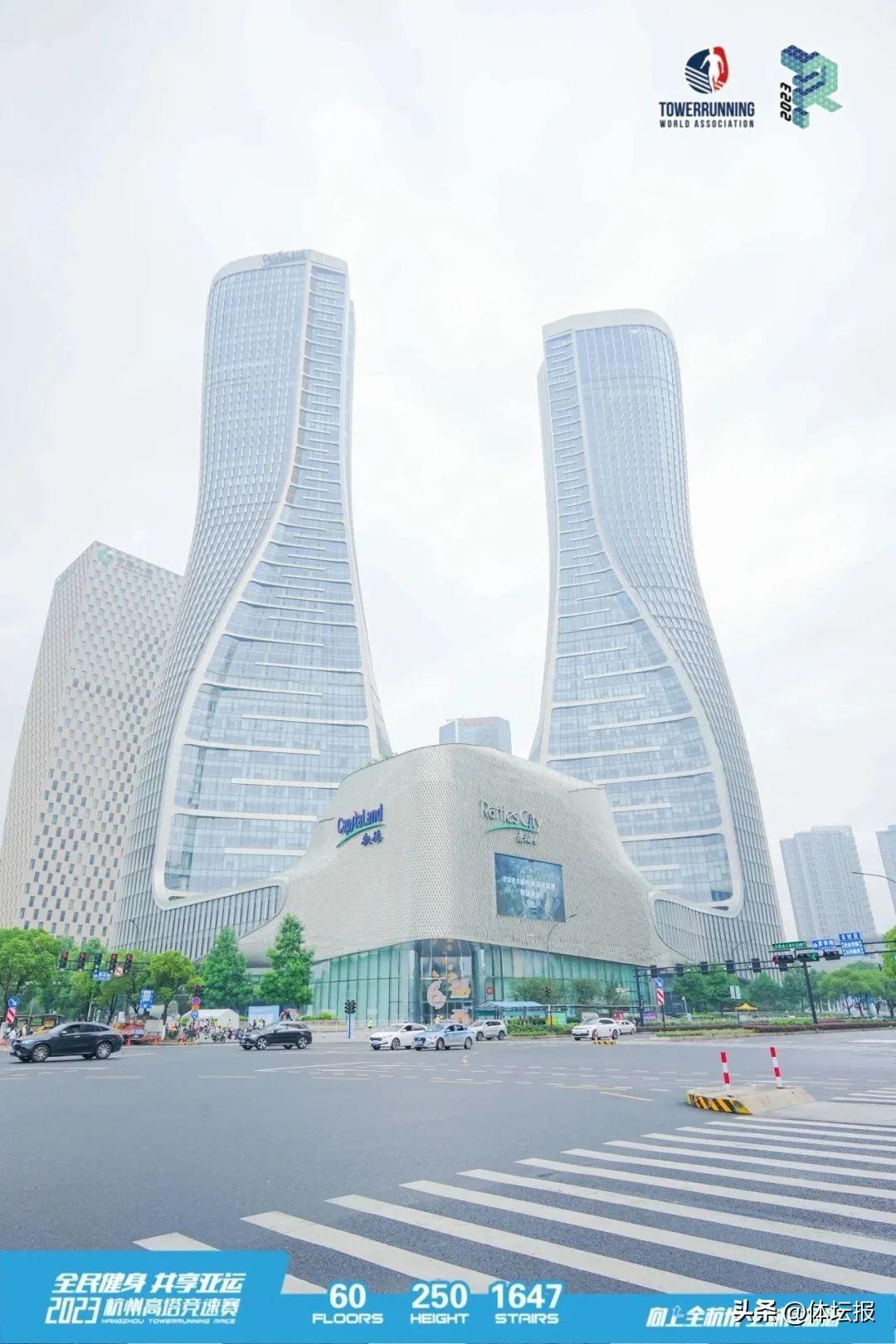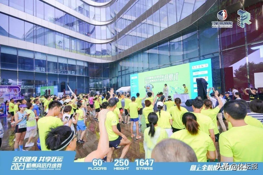 6月18日,剛入梅的杭州迎來了首個溼漉漉的週日。儘管雨幕厚重,但杭州來福士廣場上卻熱力四射。近千名選手在60層1647級臺階的杭州來福士中心2號塔樓下跟隨着頗具動感的音樂專心熱身,蓄勢待發。他們從全國各地趕來參與一場“垂直競速”——2023杭州高塔競速賽。從0米地面到250米的終點,選手們在在聳峙雲霄的高塔樓層間穿梭,上演一場階梯上的競速。