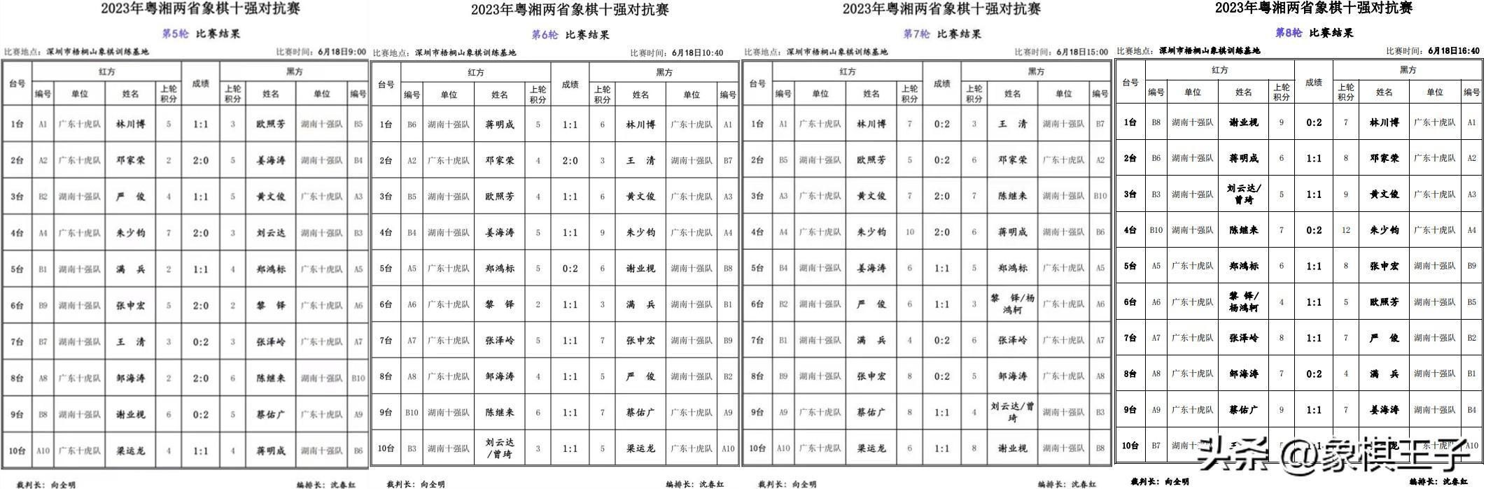 2023年粵湘兩省象棋十強對抗賽的對決,首日當中,湘軍11:9,10:10,9:11,11:9,41比39,佔住上風,險贏2分。