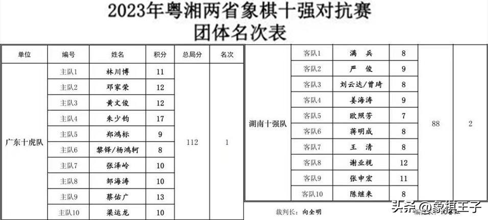 業餘專業超級大火拼,2023年粵湘兩省象棋十強對抗賽盛大收兵,圓滿成功,廣東十虎隊名不虛傳,登頂王座,業餘第一品牌,江湖第一天團,虎嘯弈林,傲視天下,致敬!