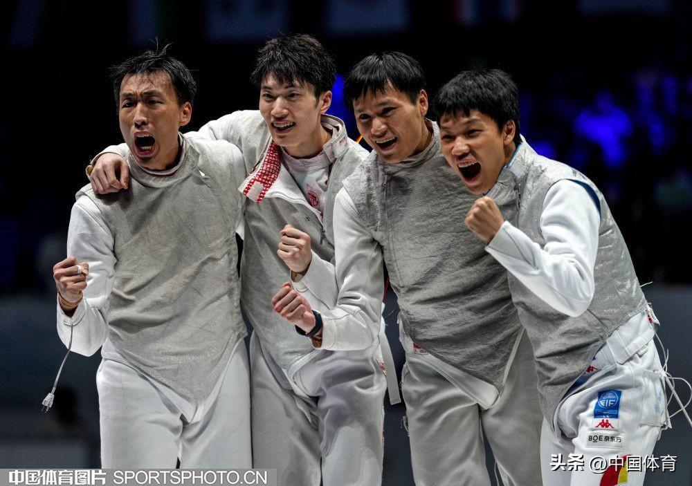 代表中國隊出戰男子花劍團體賽的四位隊員:(左起)莫梓維、許傑、陳海威、曾昭然