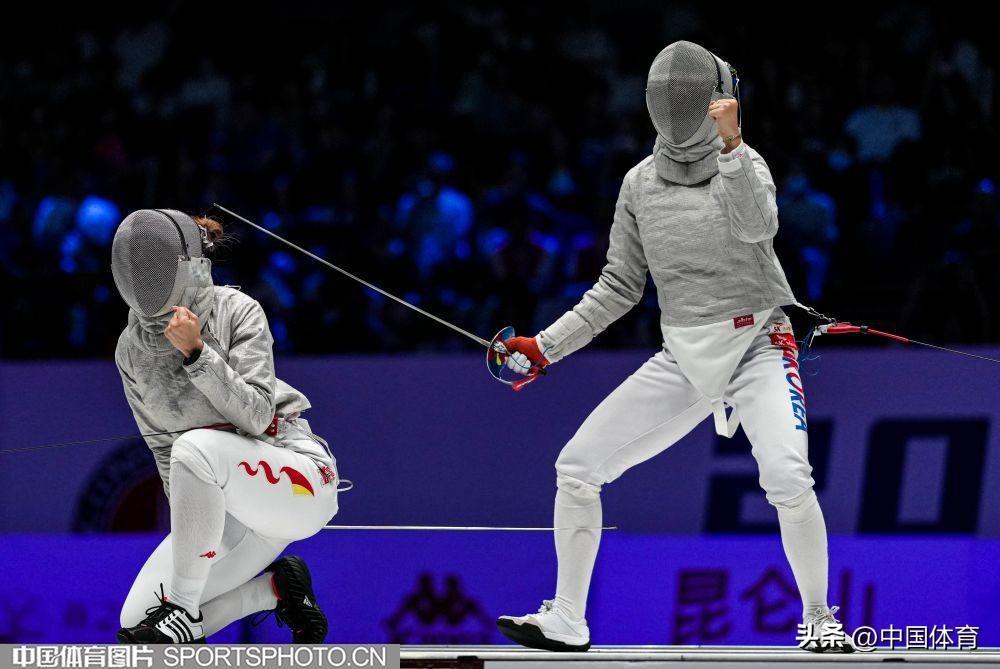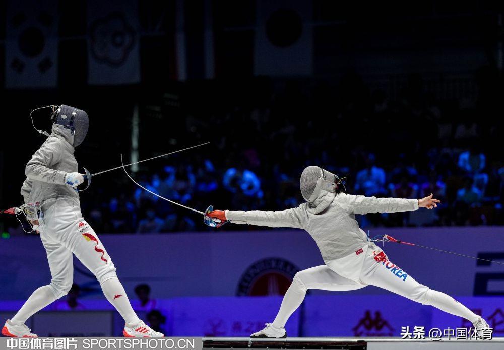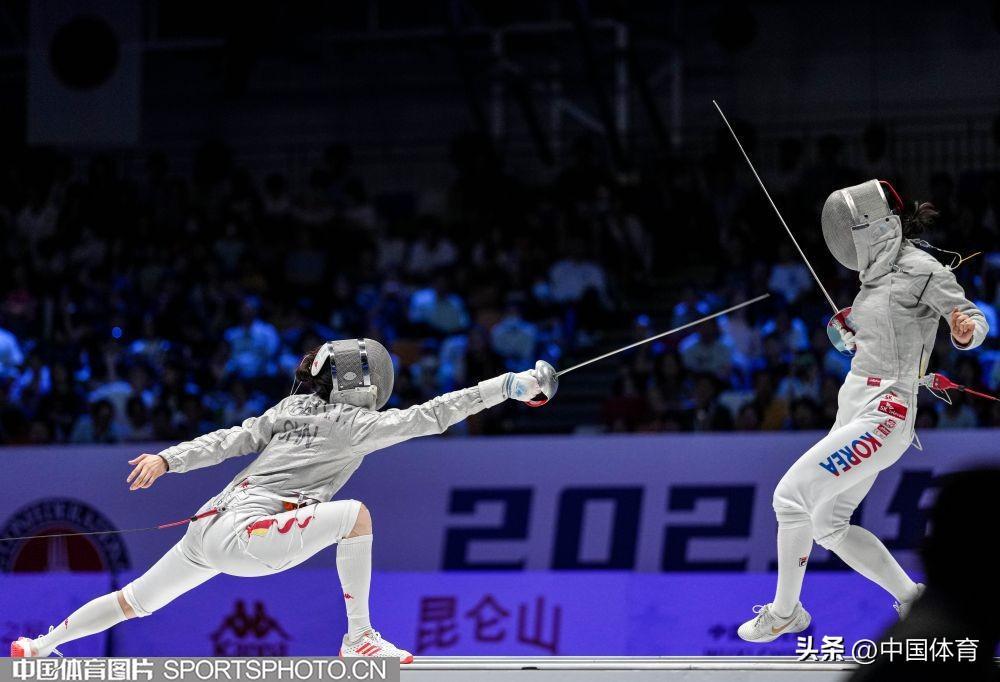 中國女佩選手傅穎(左)在比賽中