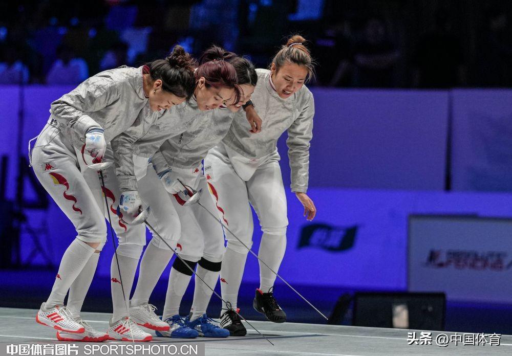 代表中國隊出戰女子佩劍團體賽的四位隊員:(左起)楊恆鬱、邵雅琦、張心怡、傅穎