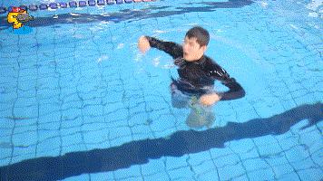 2、在泳池的水中因爲溺水導致上下折騰的時候,索性讓自己下去踩到池底,再跳起來到水面上進行換氣;