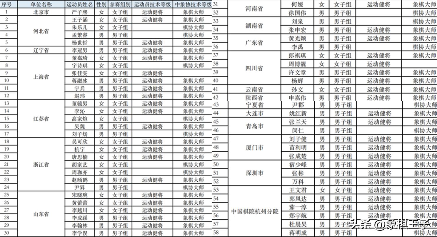 大賽共有男子36、女子22,五十八位象棋大師、棋協大師火線比拼,其中00後佔住了半壁江山,達二十九人之多。