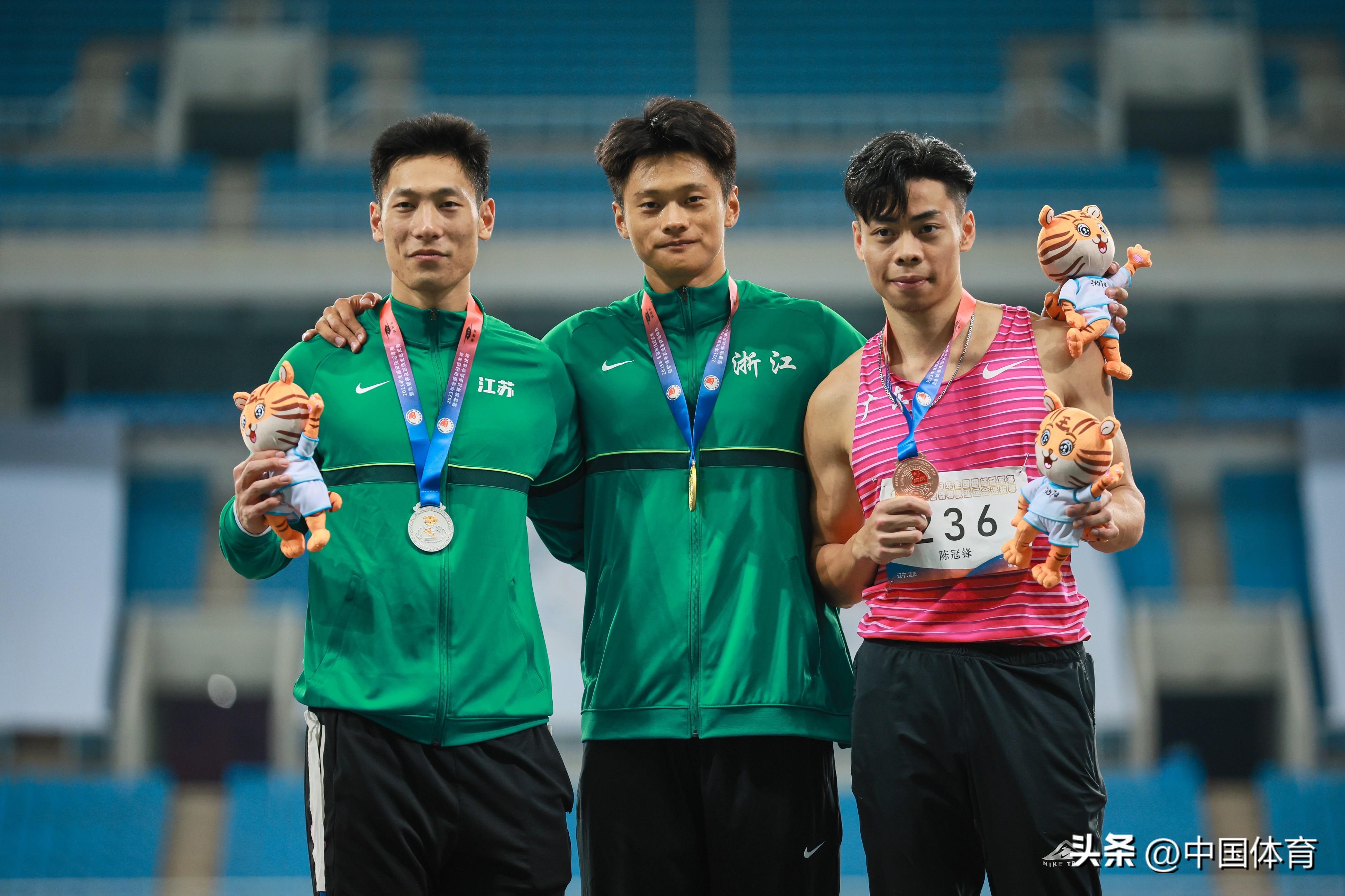 男子100米金牌被浙江名將謝震業以10秒09斬獲,江蘇鐵人隊石雨豪和廣東隊陳冠鋒分獲亞軍和季軍,成績分別爲10秒18和10秒21。
