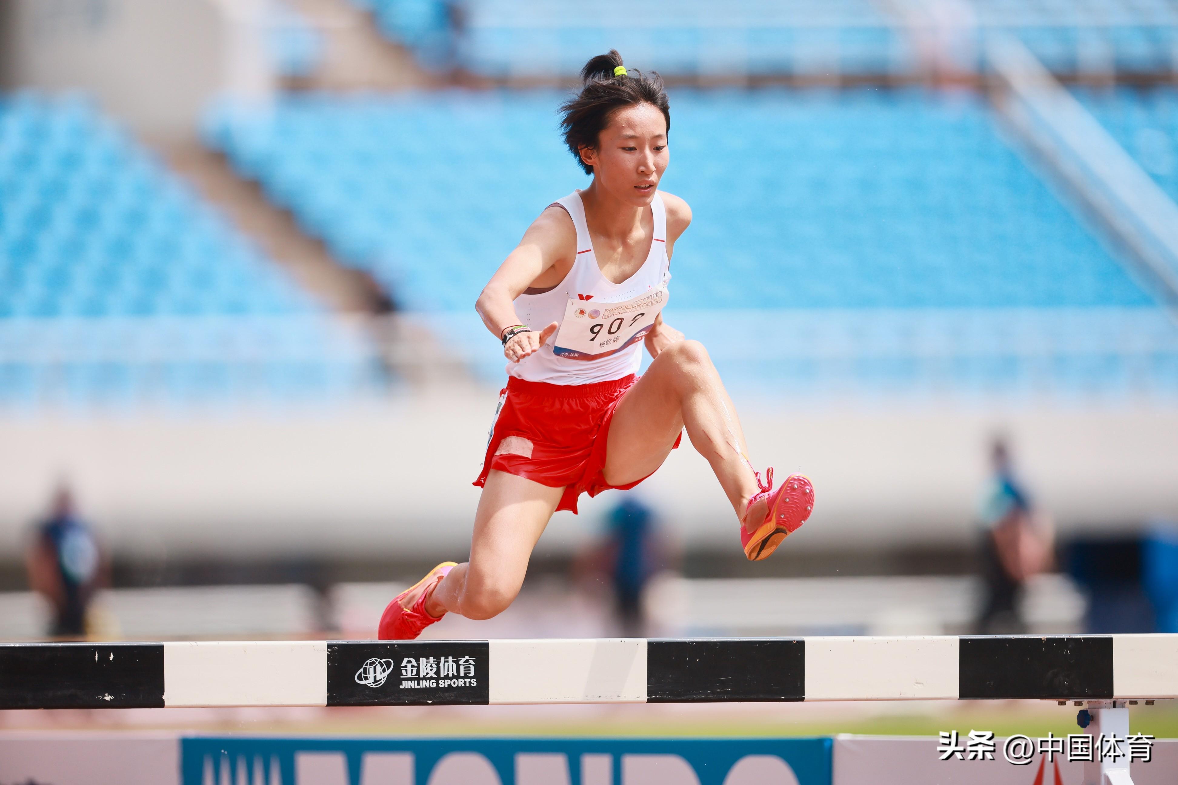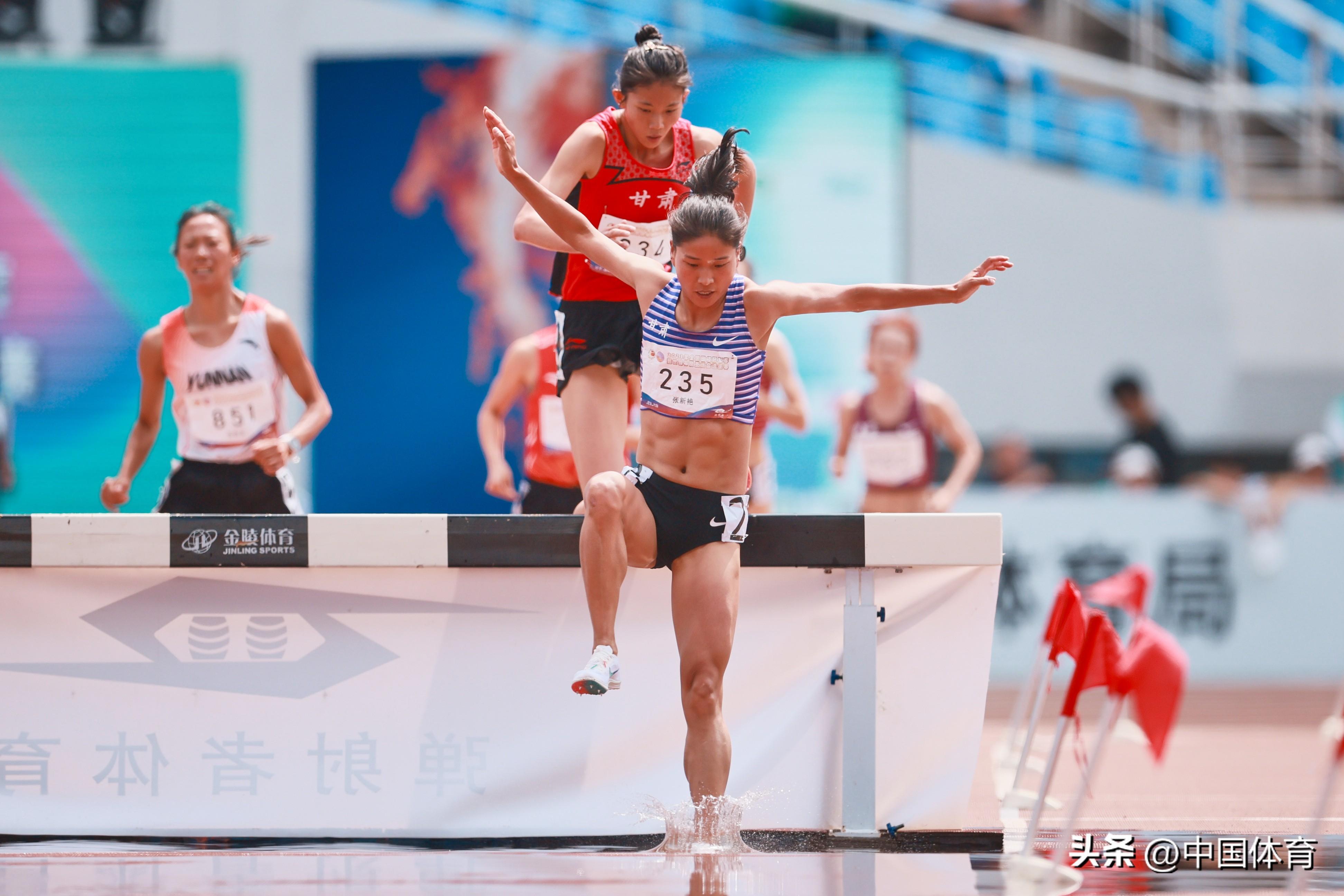 女子3000米障礙決賽中,甘肅隊張新豔以9分57秒63笑攬金牌,遼寧隊王麗以10分06秒70獲得銀牌,以個人身份參賽的楊屹婷以10分09秒43收穫銅牌。(中國體育圖片 鹿麟 攝)