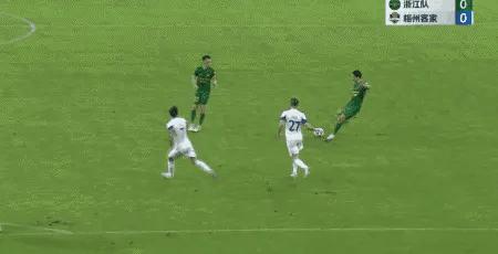 下半場開始,急於扳平比分的梅州客家採用高壓態勢,一度讓浙江隊陷入被動局面。但是,浙江隊也一直在防守中伺機進攻。第69分鐘,埃弗拉抓住反擊機會一路單刀至對方禁區,以精準搓射穿過回防的杜加利奇的“小門”攻入梅州的大門,使浙江隊以2:0的優勢掌握比賽節奏。