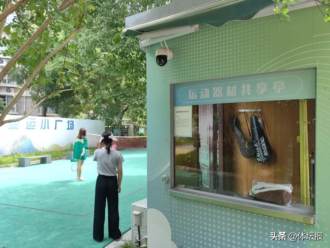 “有了硬件,那軟件也要同步跟上。爲滿足社區居民多類運動需求,6月份我們將閒置核酸亭搬運到亞運小廣場並打造成運動器材共享亭。購置了羽毛球、乒乓球、排球、跳繩等器材,方便鄰里共享。大家可以通過採取鄰里公約和預約機制進行借用。”