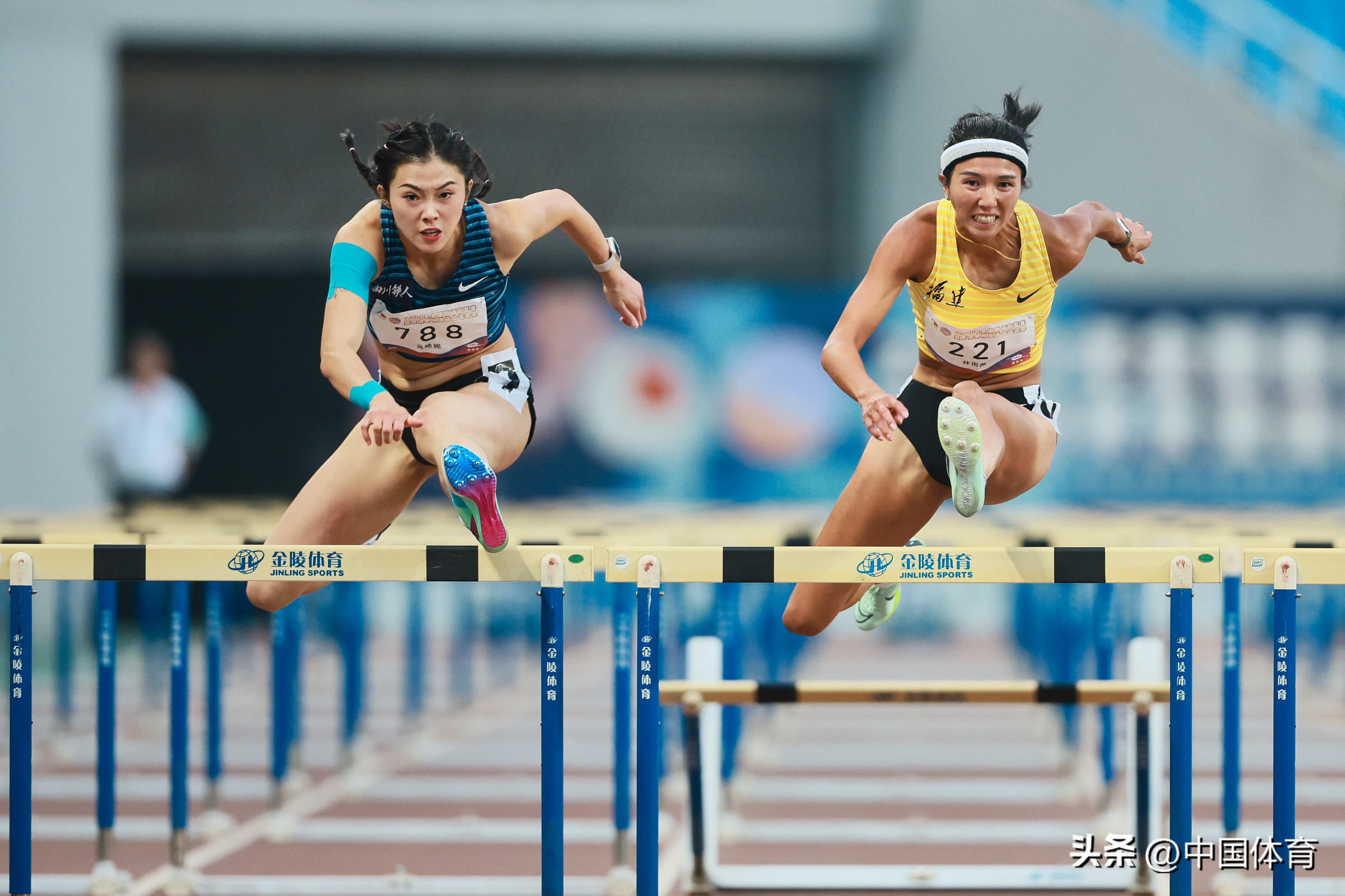 吳豔妮(左)林雨薇在女子100米欄決賽中