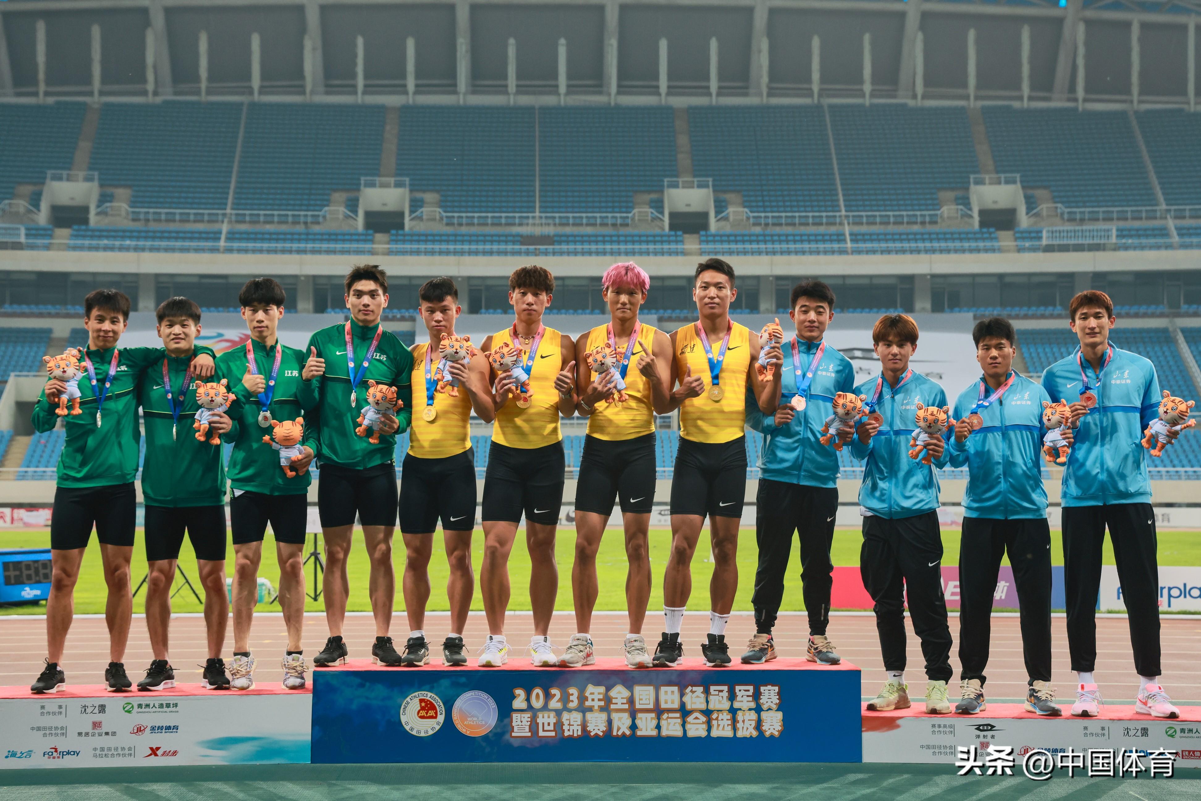 男子4x100米接力決賽中,由蘇建清、肖遠鵬、曾志斌、林啓幫組成的福建隊以38秒73登頂,江蘇鐵人隊(王爽、張賽、陸偉一、陳錦豐)以38秒85緊隨其後,山東中泰證券隊(宋新龍、崔森、王勝傑、喬臻)以39秒15位居第三。