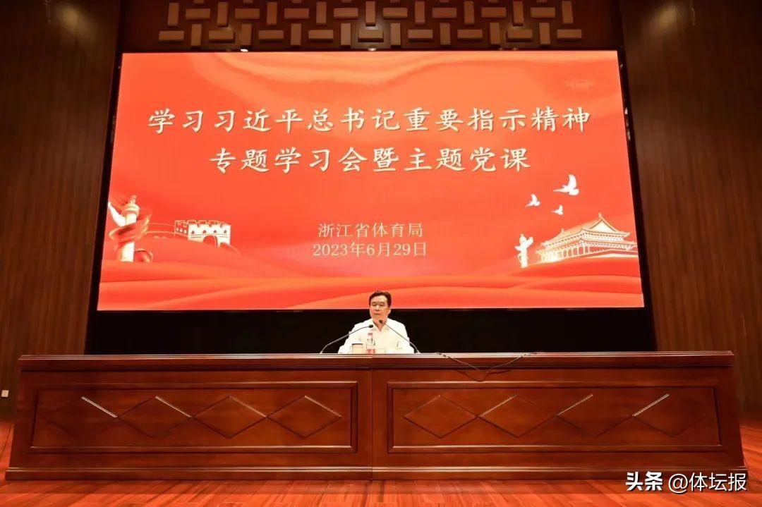 6月29日,省體育局在浙江體育職業技術學院舉行學習習近平總書記重要指示精神專題學習會暨主題黨課,傳達學習貫徹習近平總書記重要指示精神,深刻把握“八八戰略”對浙江發展的引領作用和推進中國式現代化的全局性意義,深入推進省體育局學習貫徹習近平新時代中國特色社會主義思想主題教育。