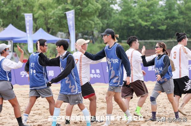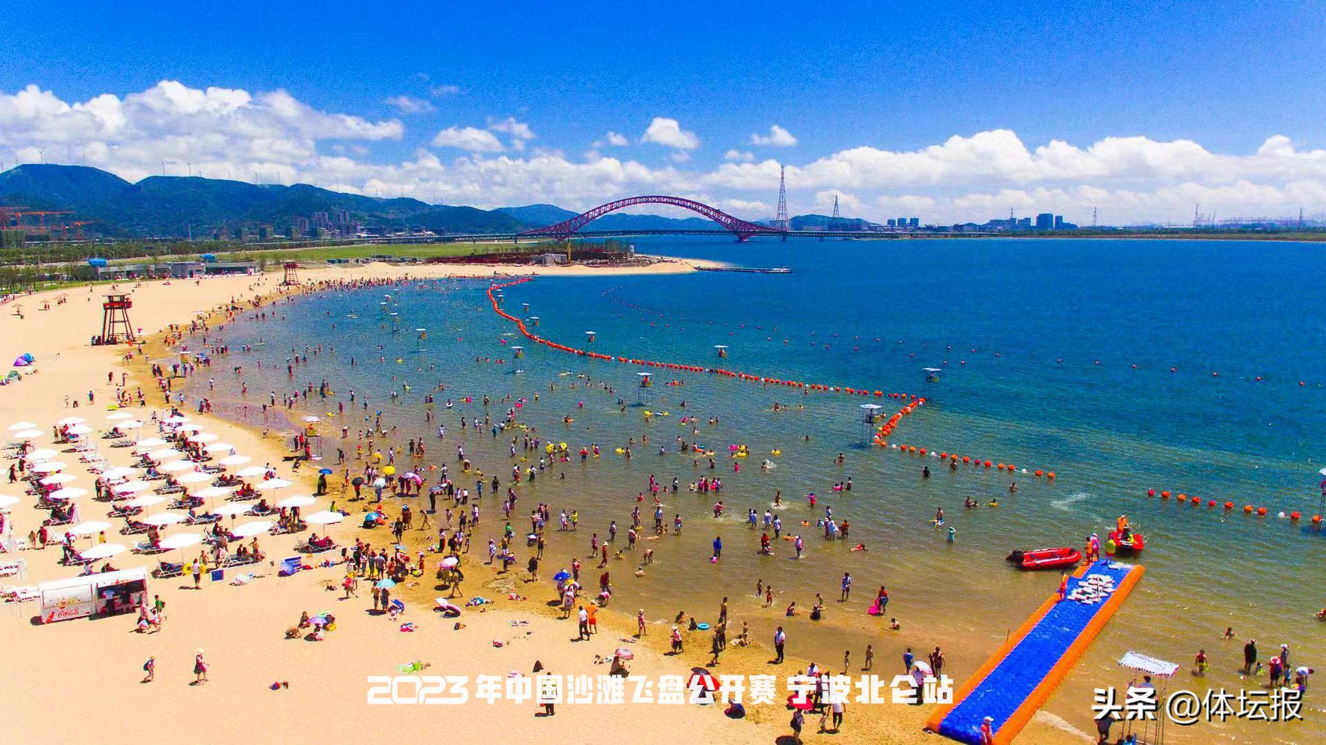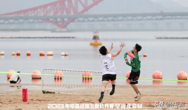 十里藍灣旁,沙灘正炙熱,碧空下劃過一道道紅色飛盤的軌跡,交織着遊客的歡笑與運動員的激情吶喊。7月1日至2日,2023年中國沙灘飛盤公開賽(寧波北侖站)在北侖梅山灣公園舉行,共有16支隊伍260餘名運動員參賽,其中9支是來自浙江的本土隊伍。